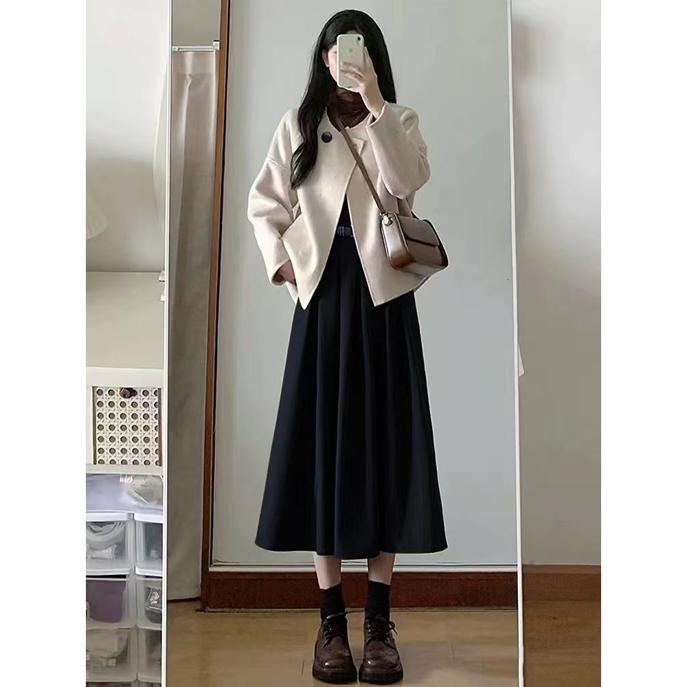 秋冬装搭配一整套女盐系高级感小香风韩剧穿搭三件套装连衣裙子
