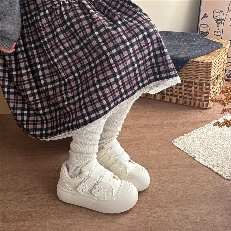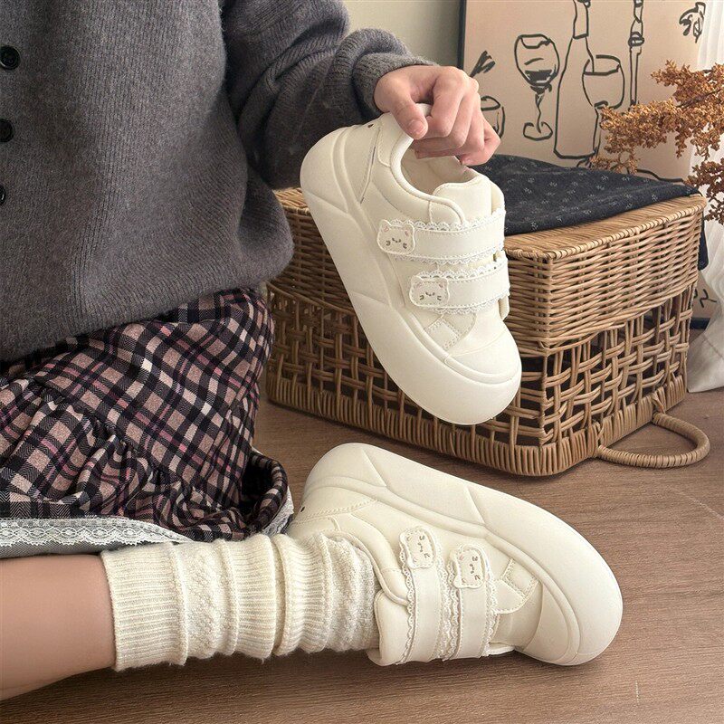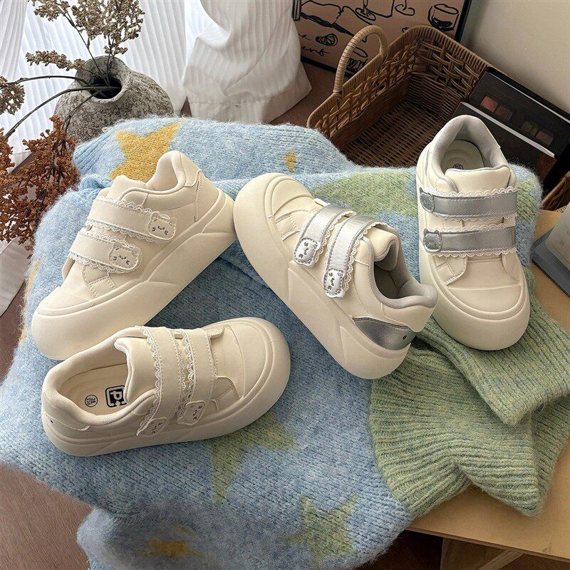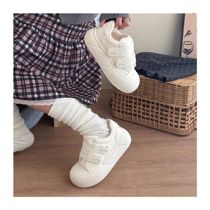 厚底小白鞋子女2026新款女鞋蕾丝魔术贴休闲百搭学生板鞋丑萌鞋女
