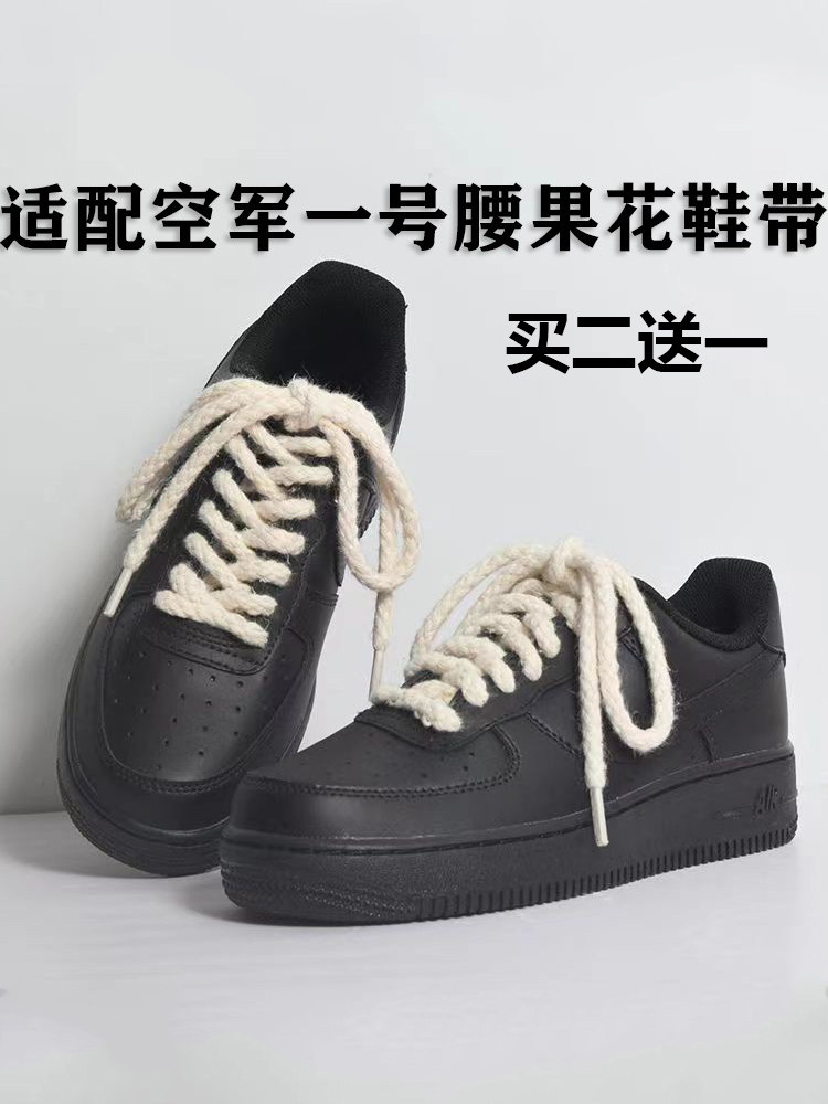 适配耐克nike dunk腰果花棉麻绳圆鞋带空军一号 AMBUSH米白黑鞋绳