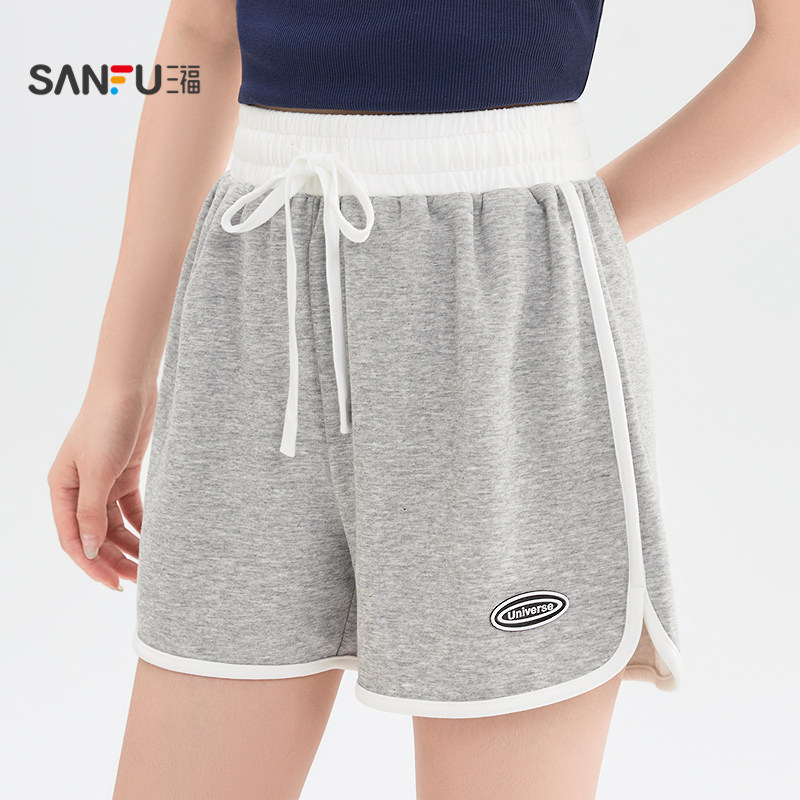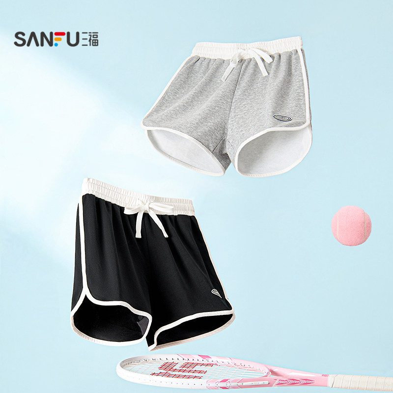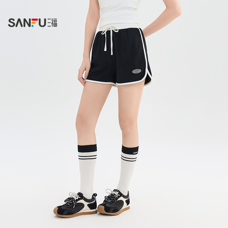 三福运动风短裤女2026新款夏季小个子直筒休闲裤高腰黑色裤子女装