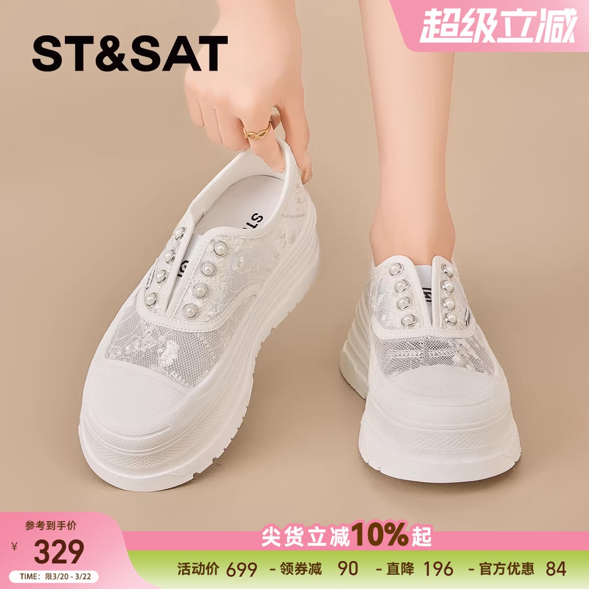 星期六厚底休闲鞋女款2026新款透气网面舒适小白鞋芭蕾风运动单鞋
