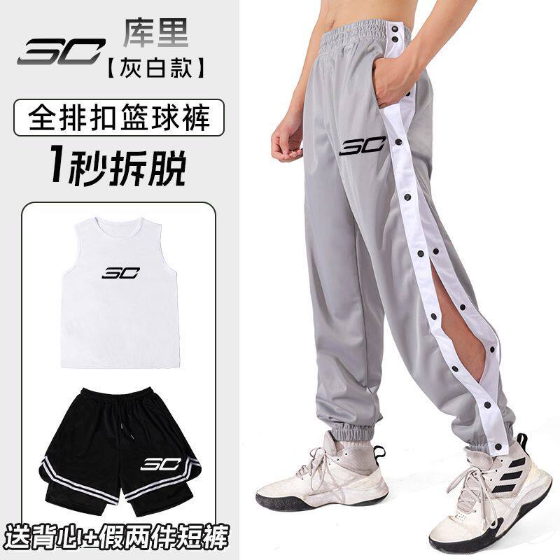 男生美式篮球裤排扣裤纽扣全开扣长裤儿童男童运动束脚训练扣子裤