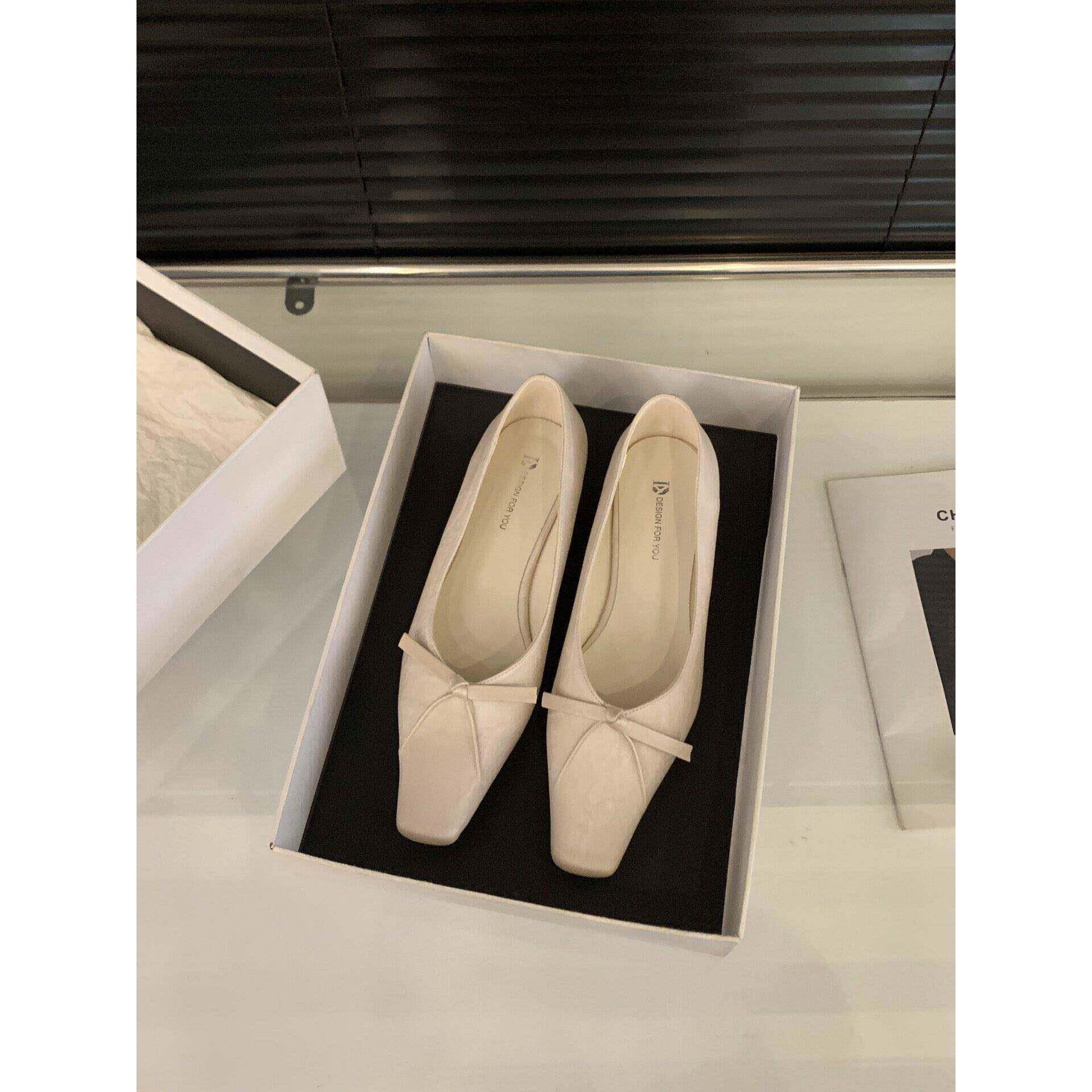 春夏粗跟法式面单鞋女鞋子2026新款春季气质配裙子浅口蝴蝶0312k