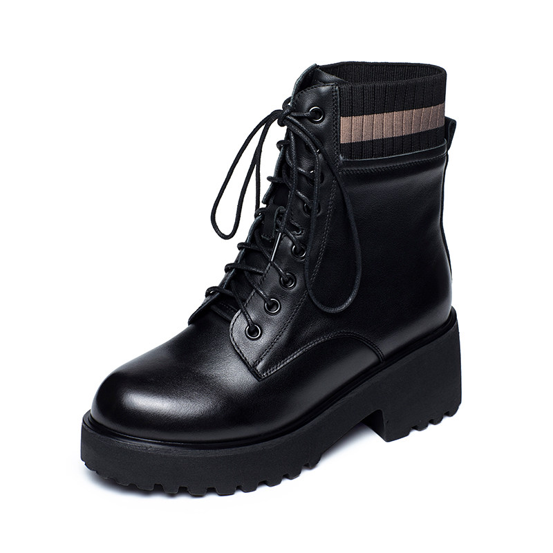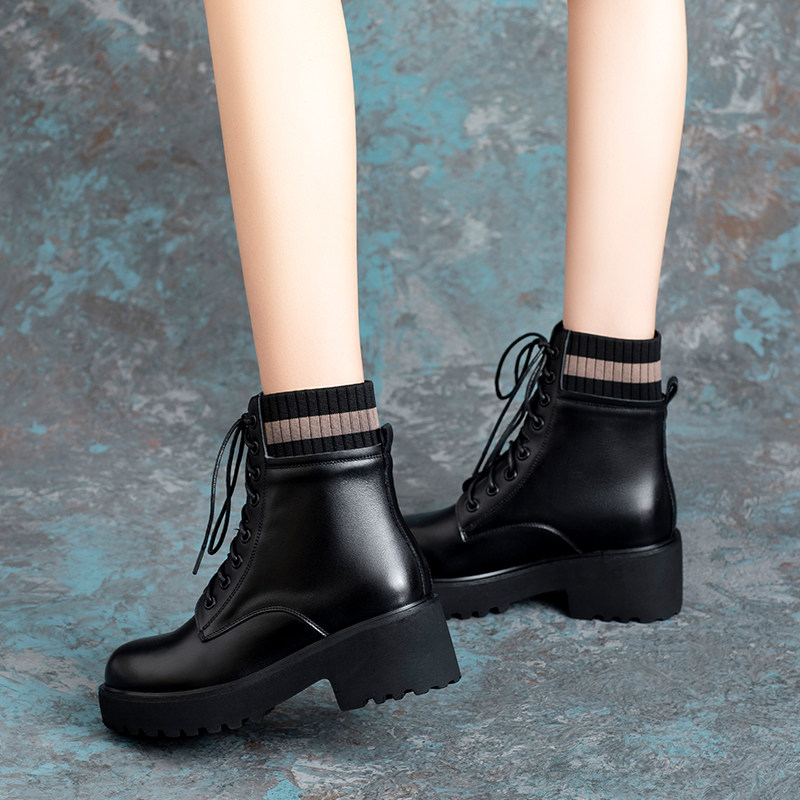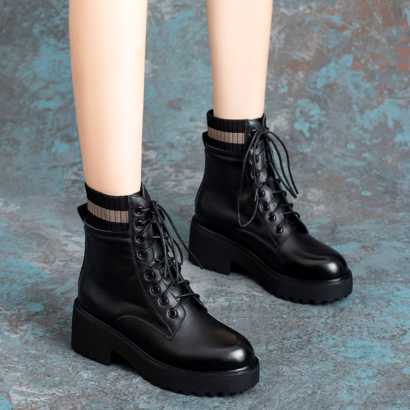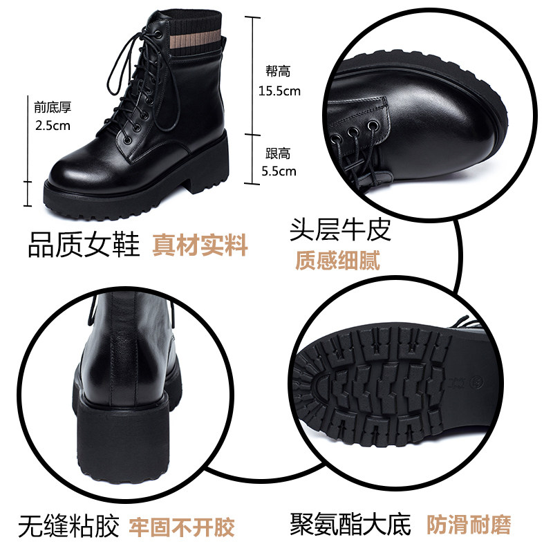 头层牛皮真皮马丁靴女鞋毛线筒新款冬季厚底靴子加绒低跟棉鞋靴SY