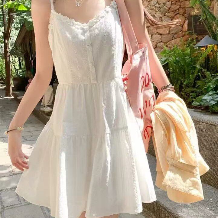 白色吊带连衣裙女夏2025小个子海边度假开春韩系穿搭短裙时尚气质