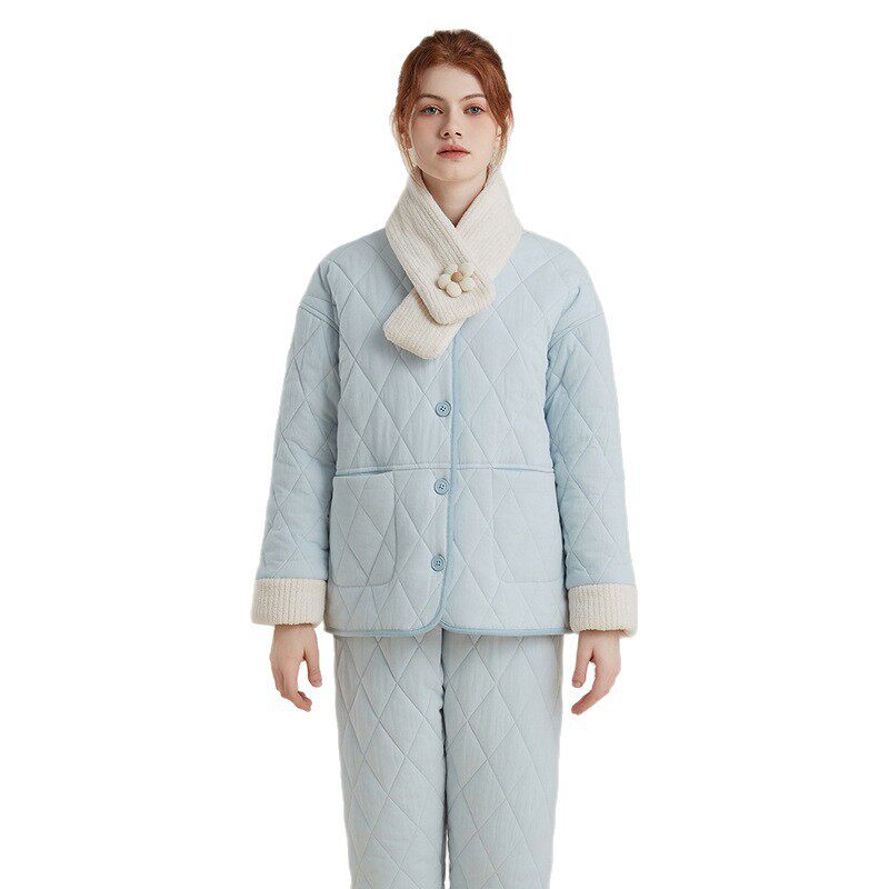 冬天三层夹棉居家女特厚保暖纯棉加绒加厚款可外穿睡衣御寒服套装