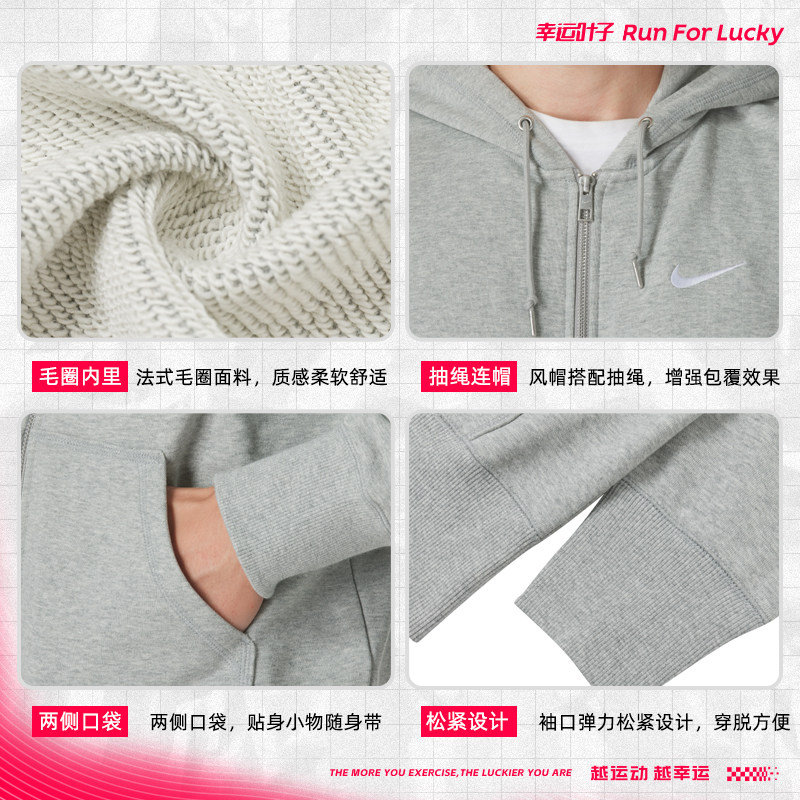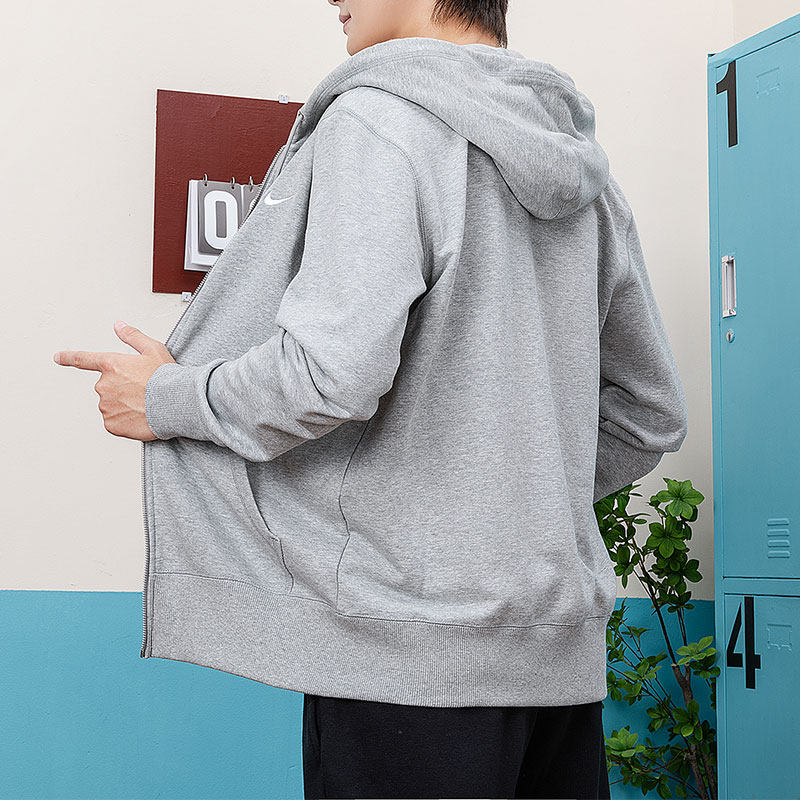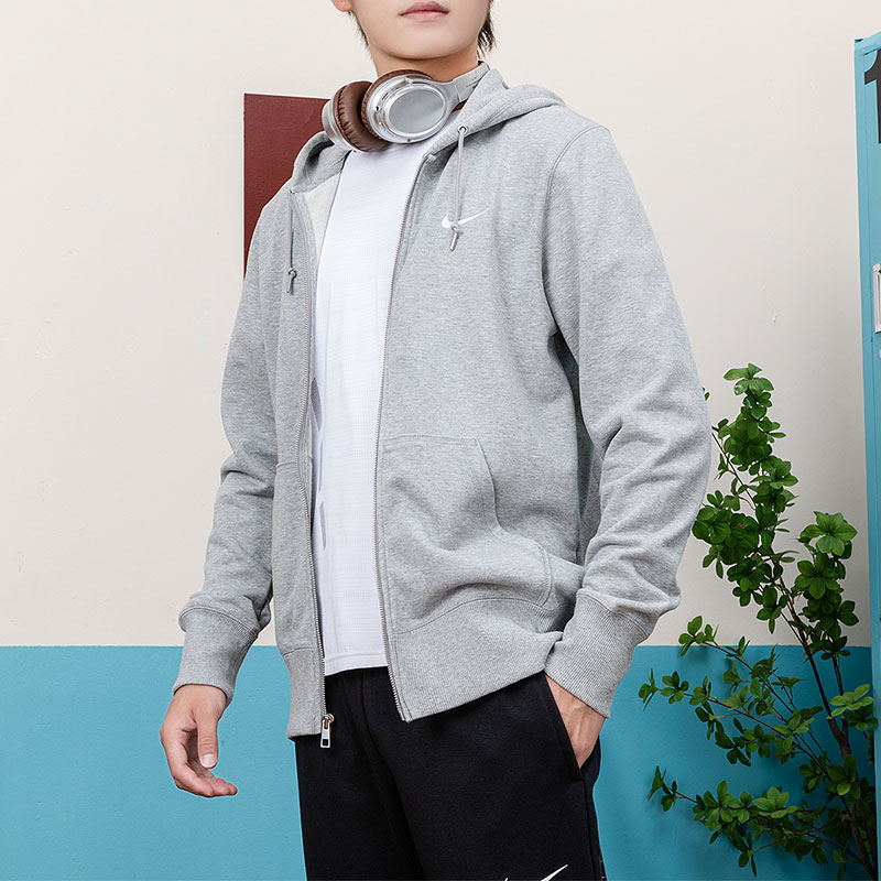 耐克官方灰色卫衣男春秋新款纯棉运动服男士休闲外套拉链针织夹克