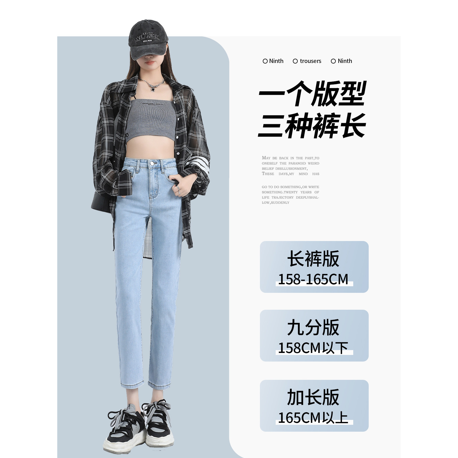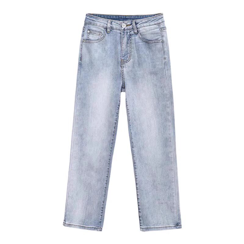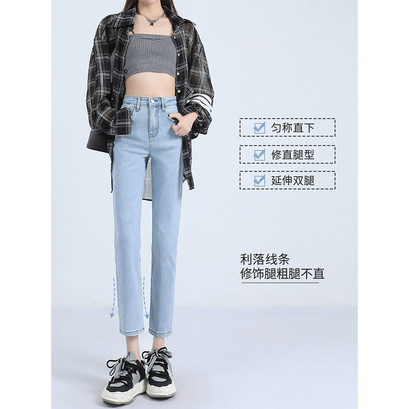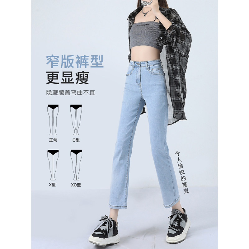 311线报网描述:小直筒女遮胯夏薄春季凉感八分长裤蓝色弹力