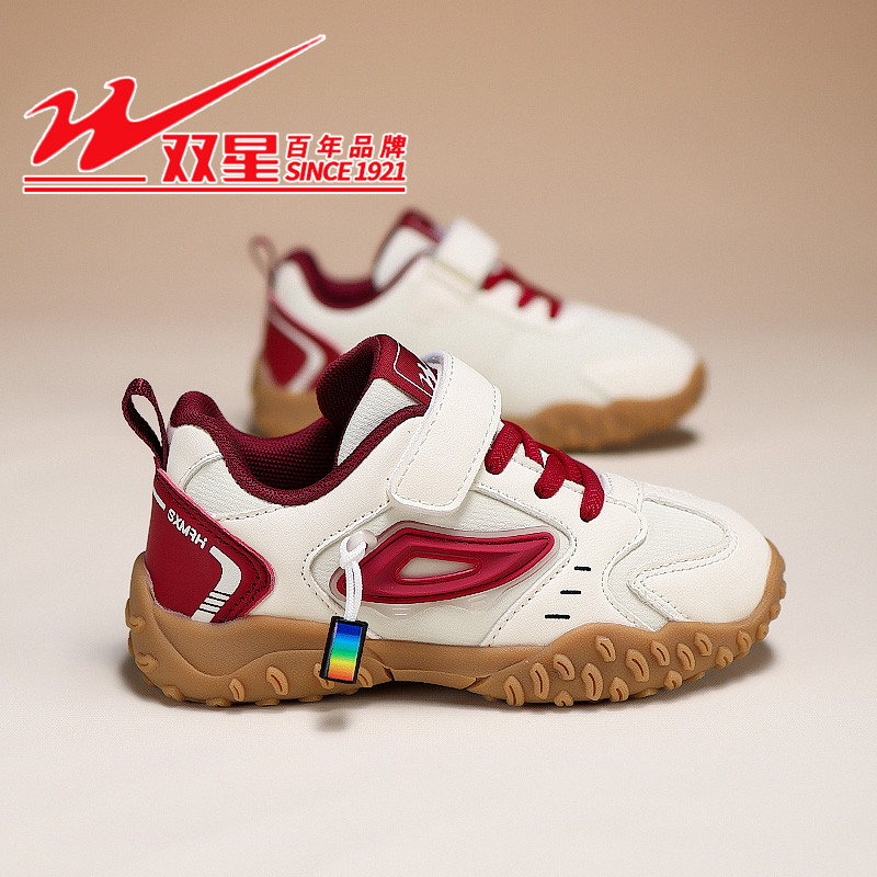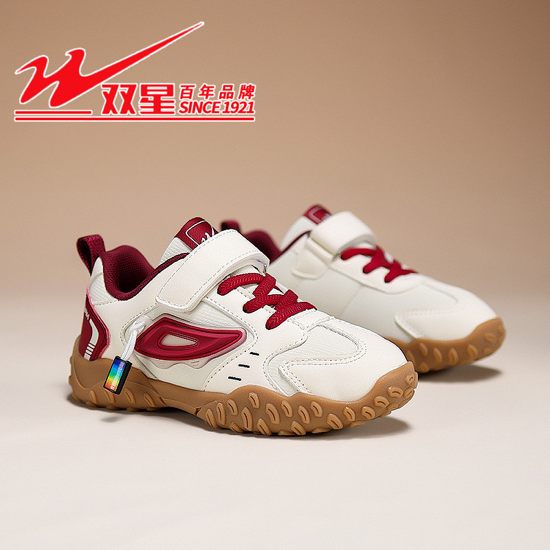双星儿童运动鞋女童鞋2026新款春秋男童皮面防水休闲阿甘鞋中大童