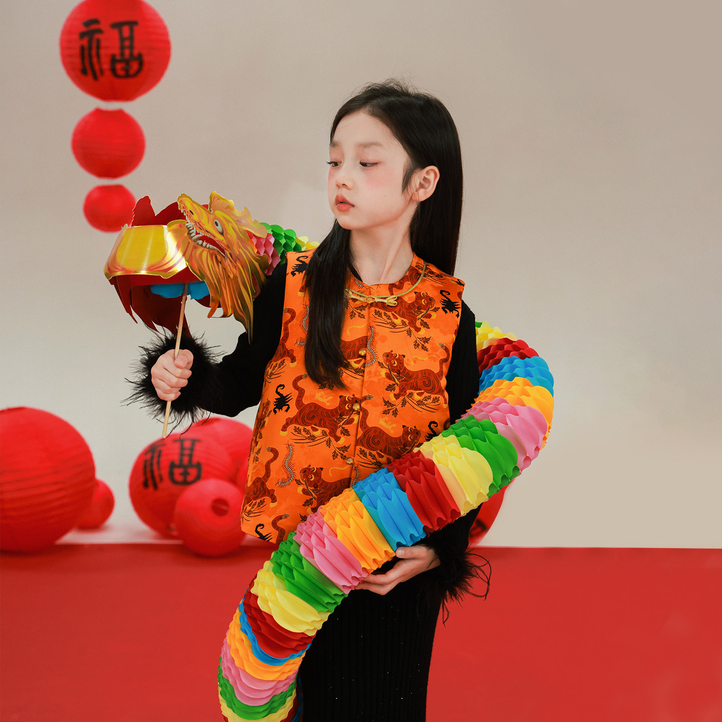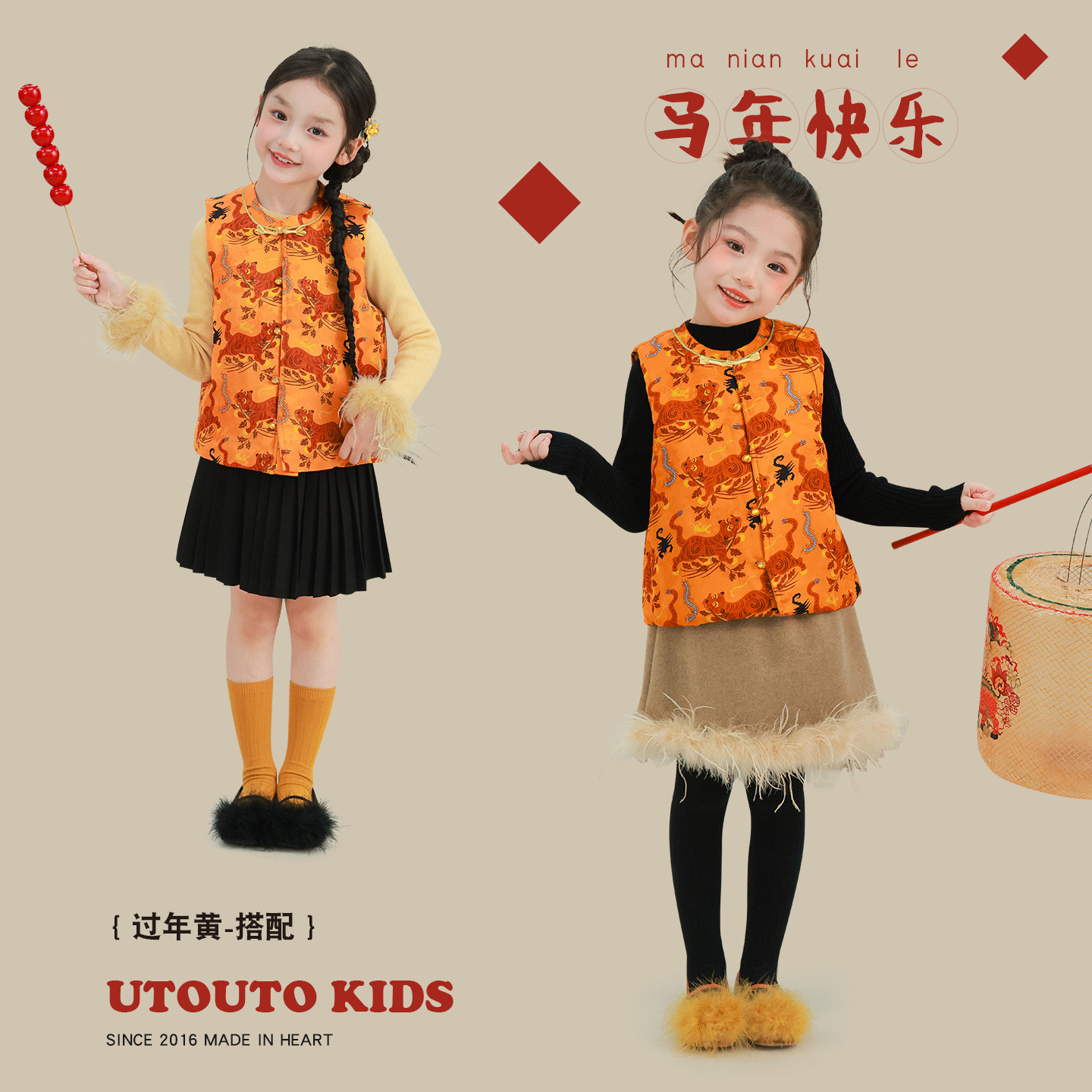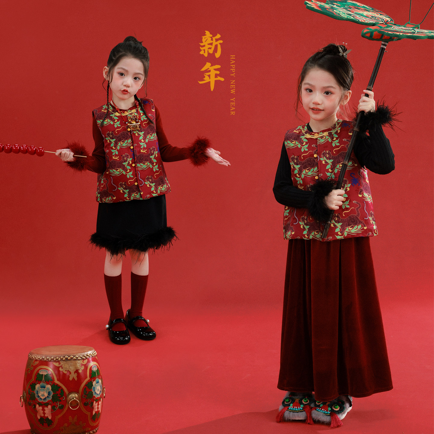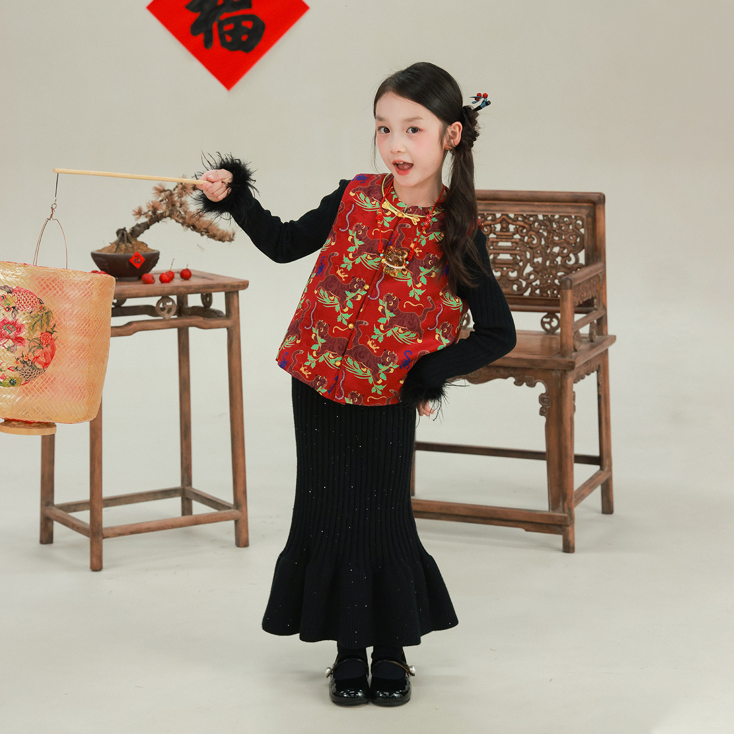 大耳象女童动物旗袍马甲冬款宝儿新中式拜年服保暖夹棉加厚上衣