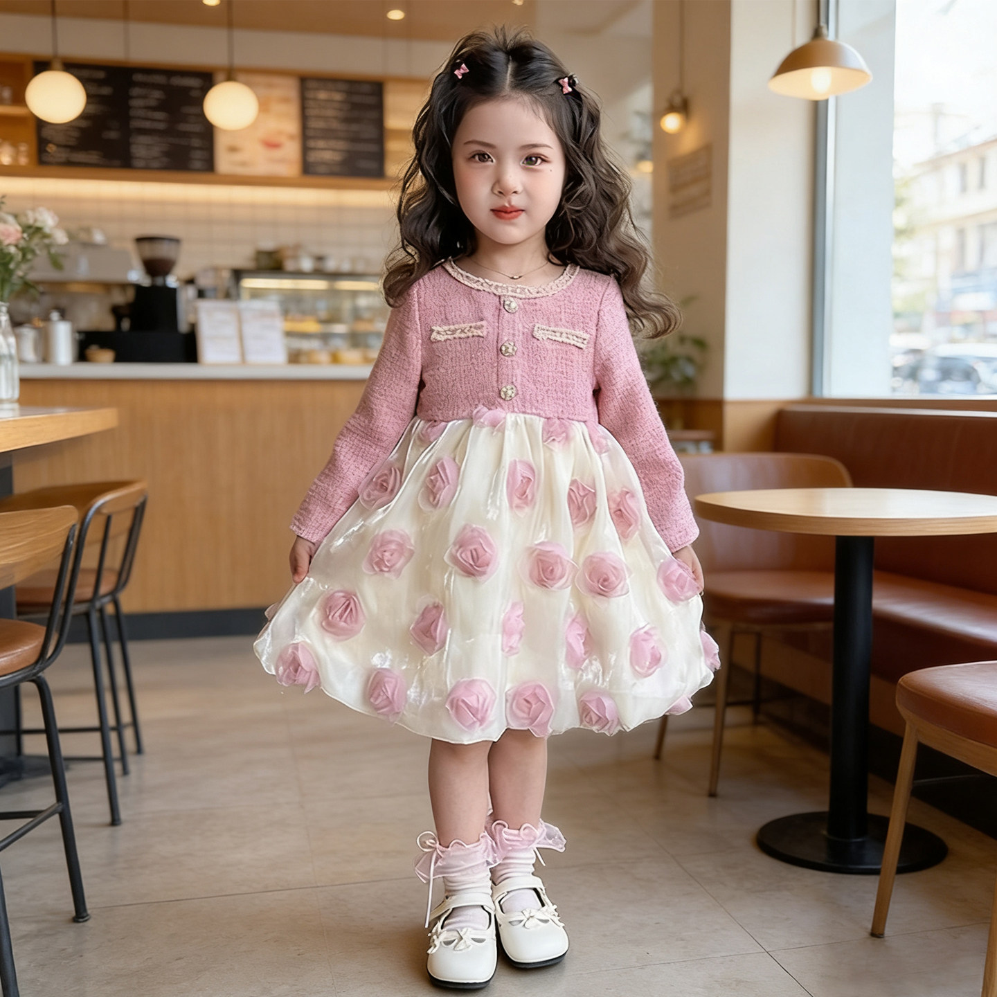 女童连衣裙春装2026新款洋气儿童小香风公主裙女宝宝春秋长袖裙子
