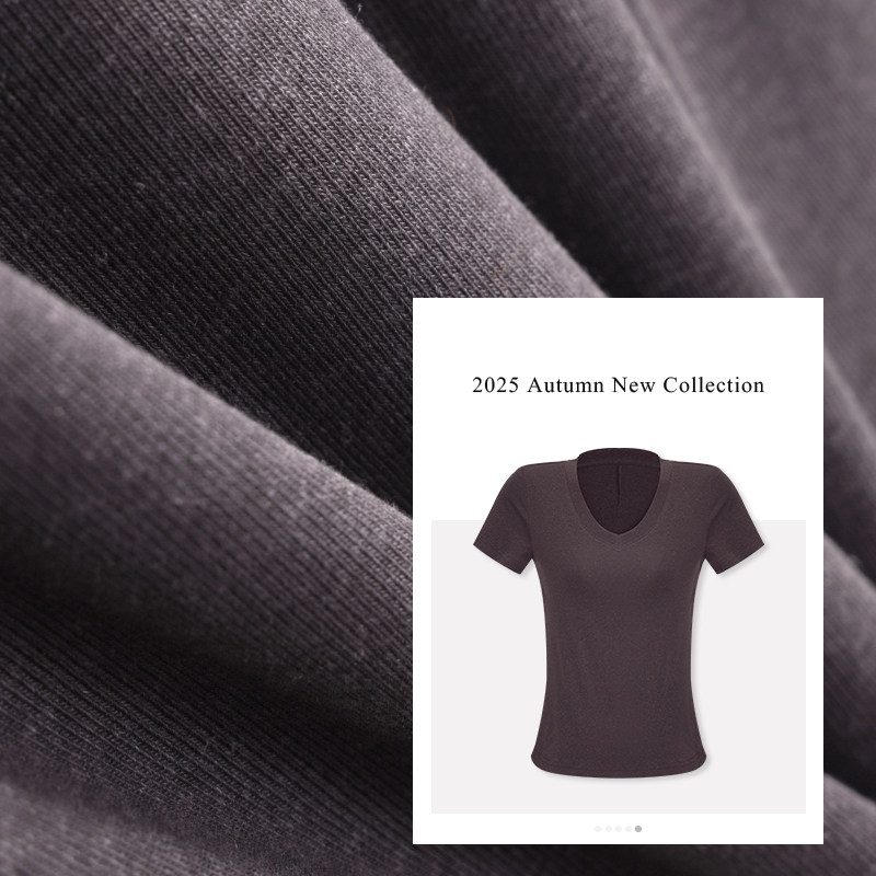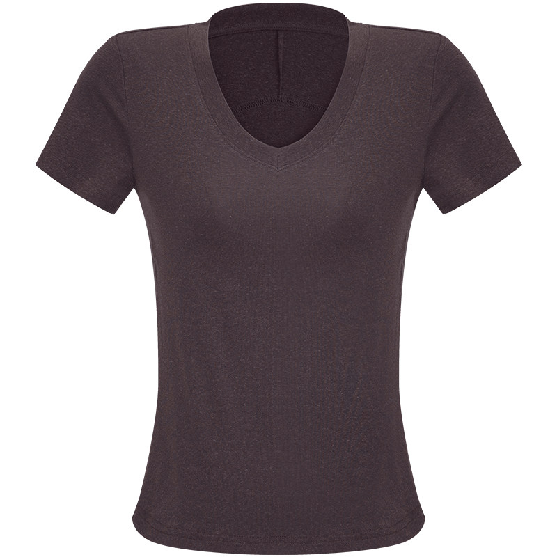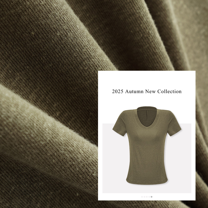 2026新款爆款天丝亚麻裸感深V正肩短袖t恤女款洋气休闲装显瘦上衣