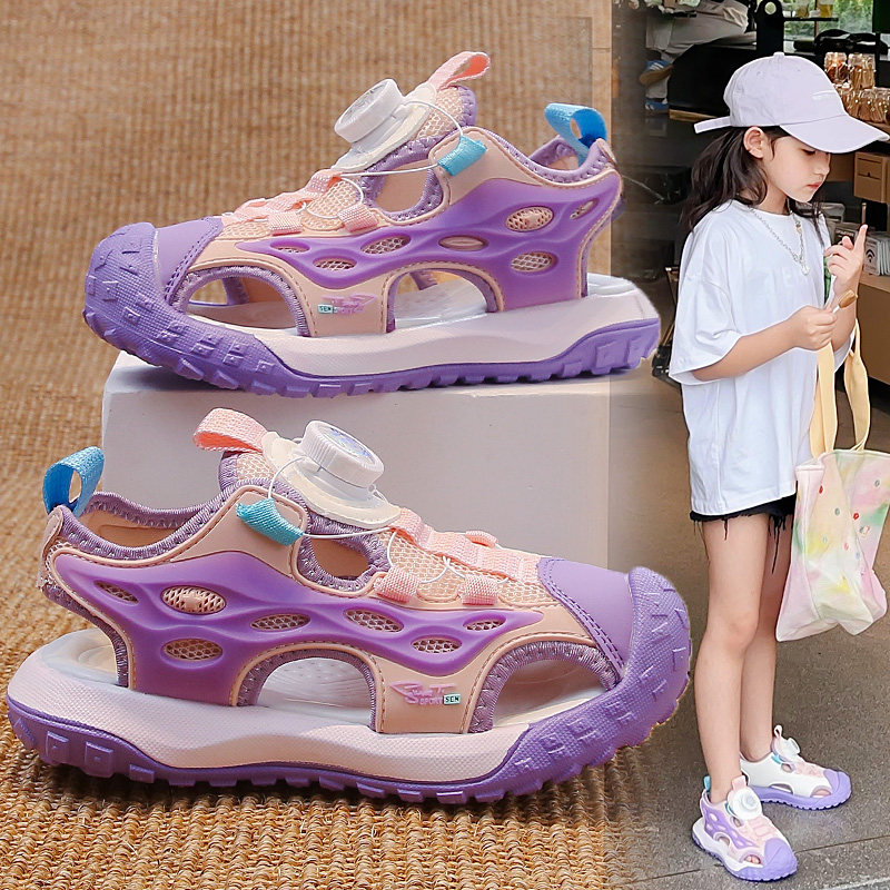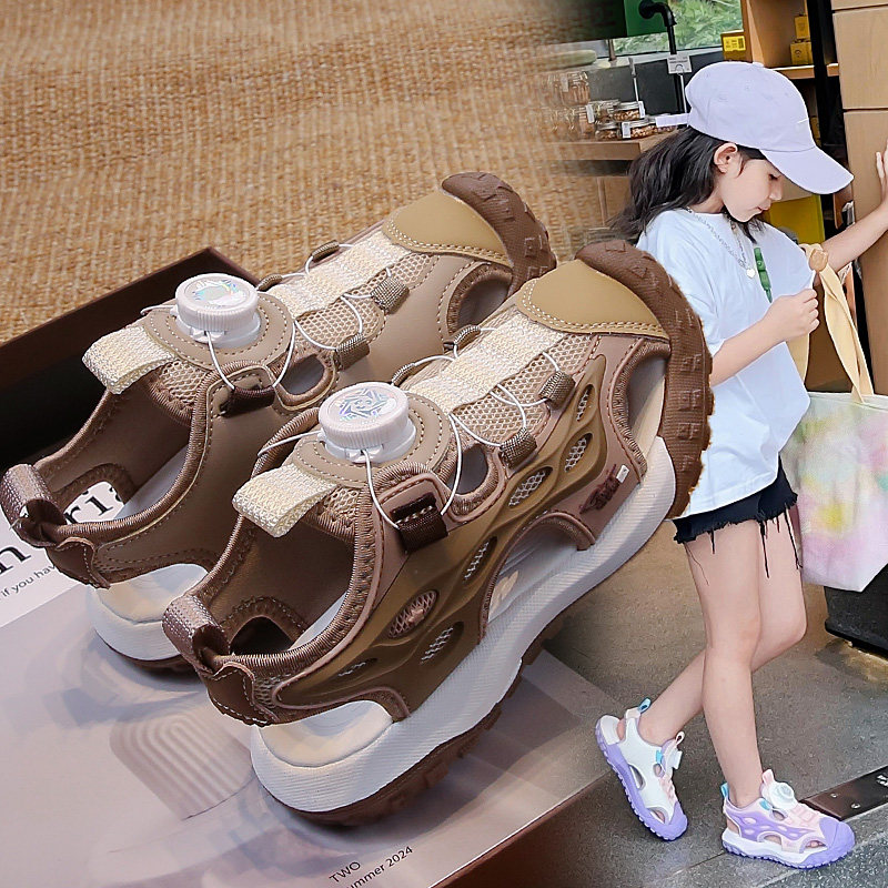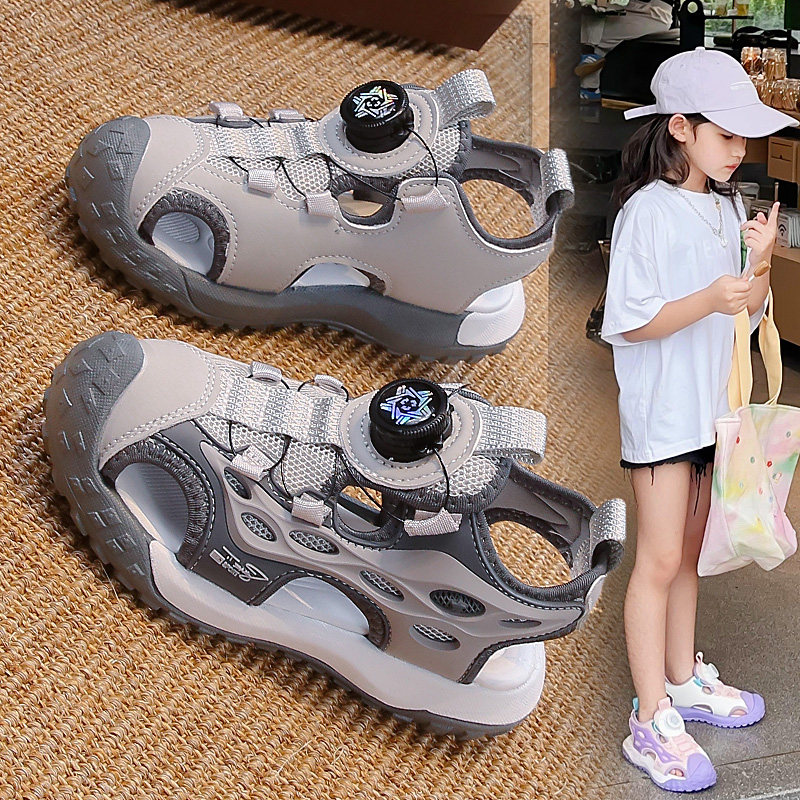 女童包头凉鞋2026夏季新款儿童纽扣运动沙滩凉拖女孩防滑防水男童