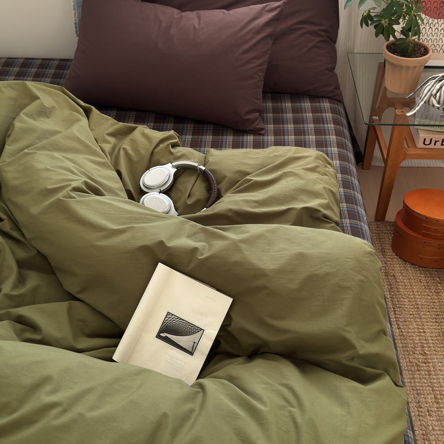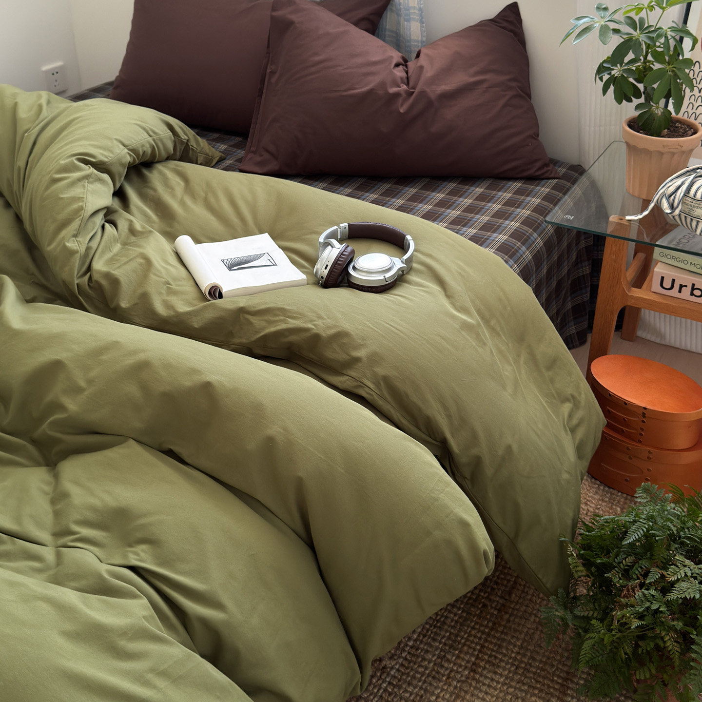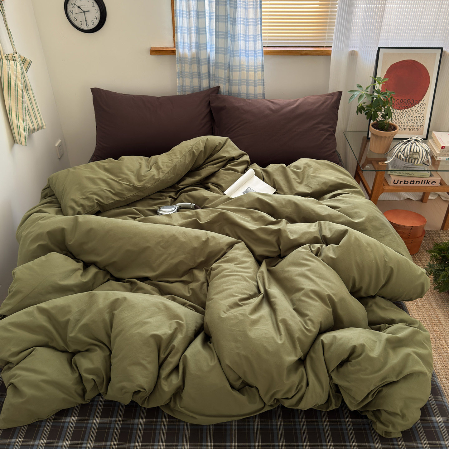 春夏ins全棉四件套美拉德混搭水洗纯棉被套床单床笠宿舍床上3件套