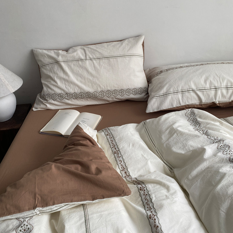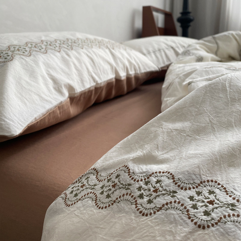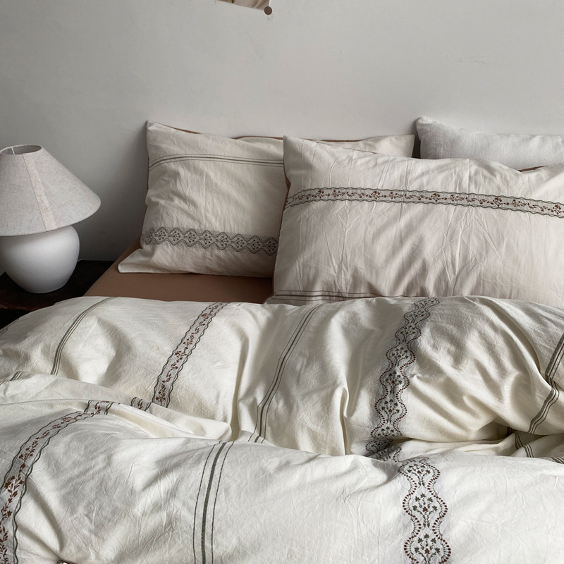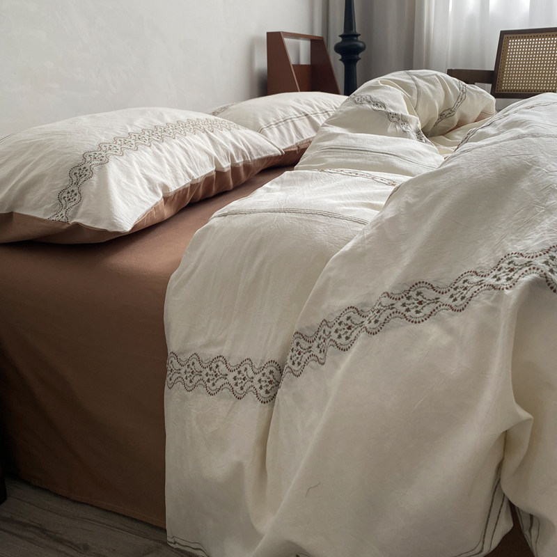 春夏新品博主风水洗棉提花四件套100纯棉全棉被套床单笠床上用品4
