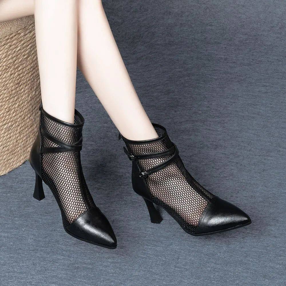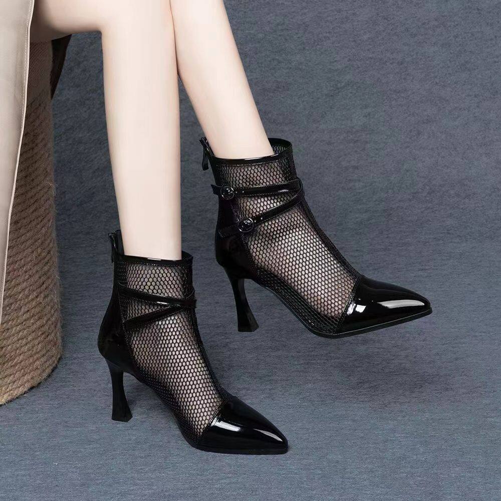 网靴女夏薄款2026新款配裙子尖头透气女短靴性感网纱镂空女凉靴子
