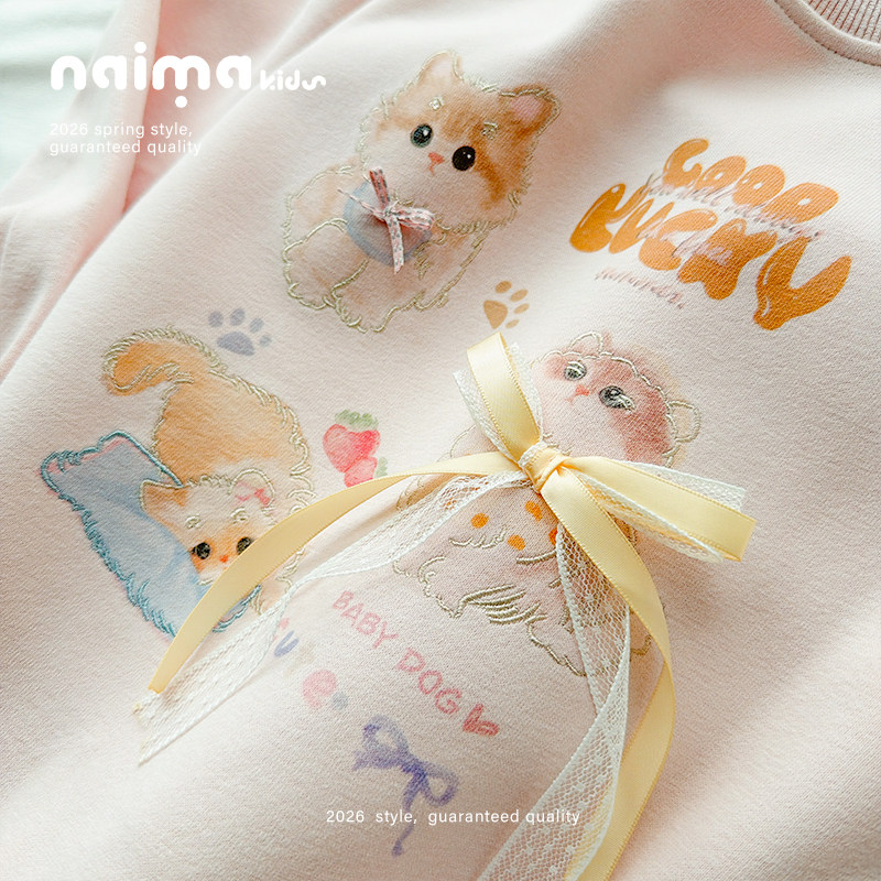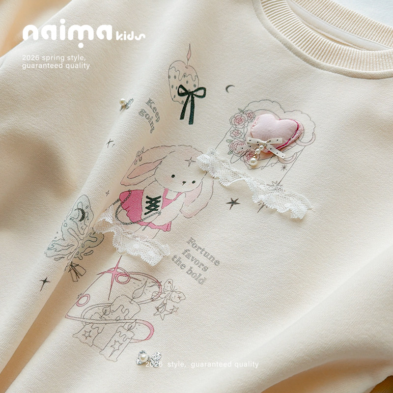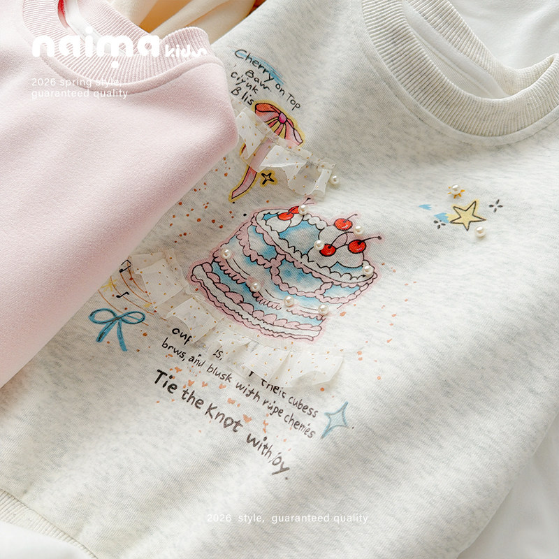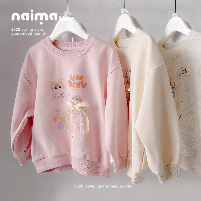 女童卫衣春装2026新款韩版洋气春季儿童装小女孩圆领套头卡通上衣