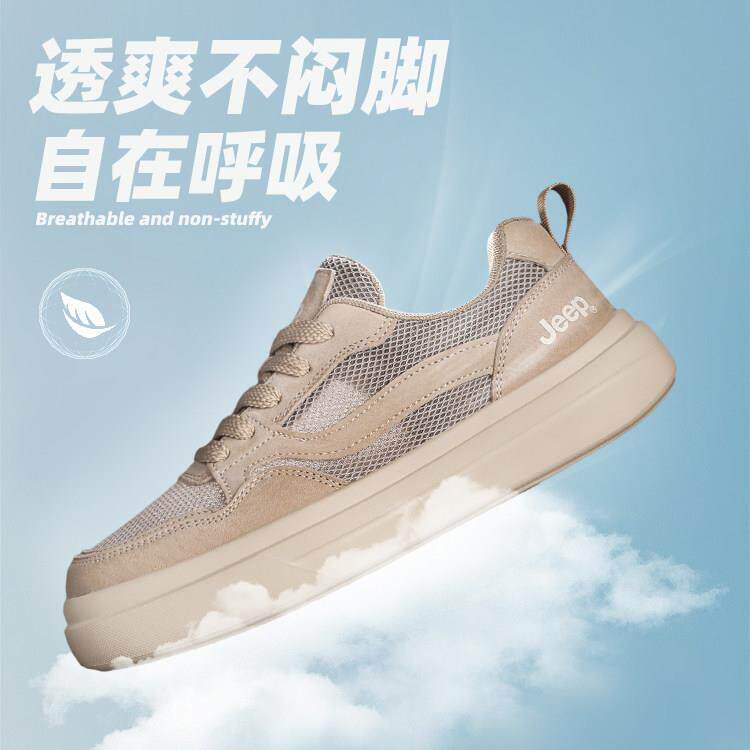 jeep吉普男鞋2026夏季新款百搭厚底板鞋运动休闲鞋透气网面鞋子男