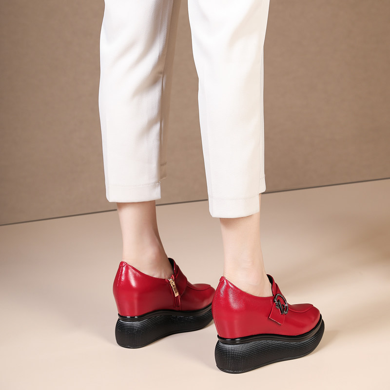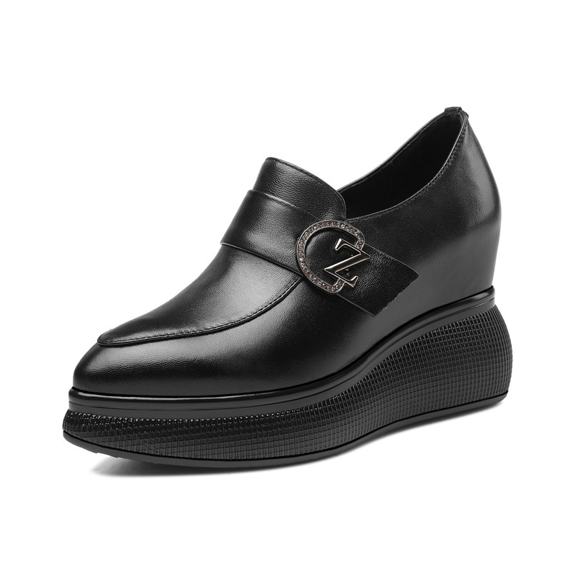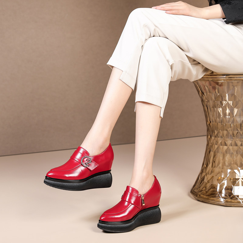 内增高女鞋厚底女单鞋尖头真皮休闲鞋侧拉链深口皮鞋高跟羊皮鞋子