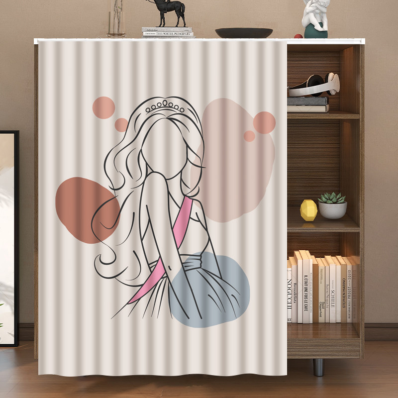 无门柜子遮挡帘滑轨布帘免打孔鞋架防尘帘子自粘式杂物柜遮丑拉帘