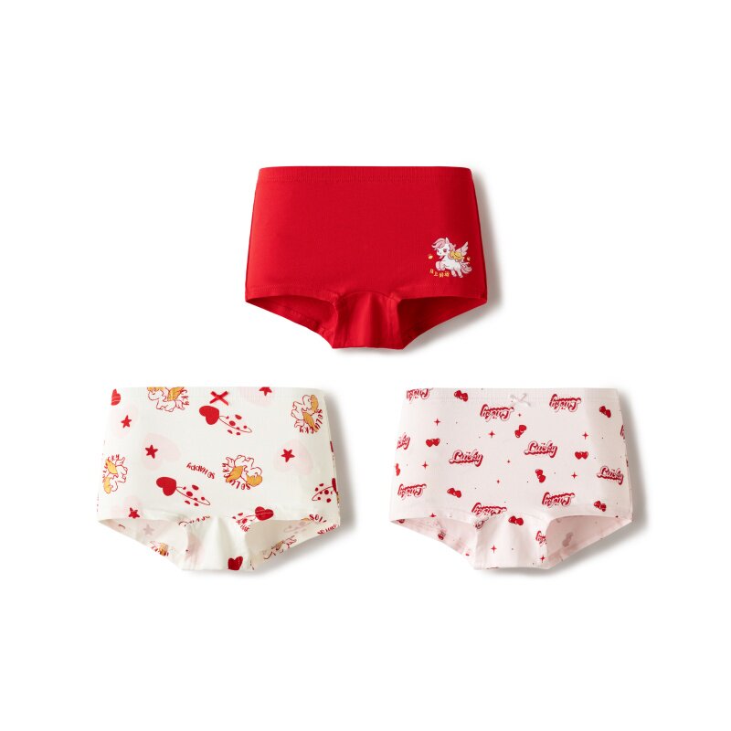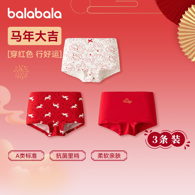 巴拉巴拉女童内裤大童宝宝平角短裤儿童四角裤底裤新款三条装红色