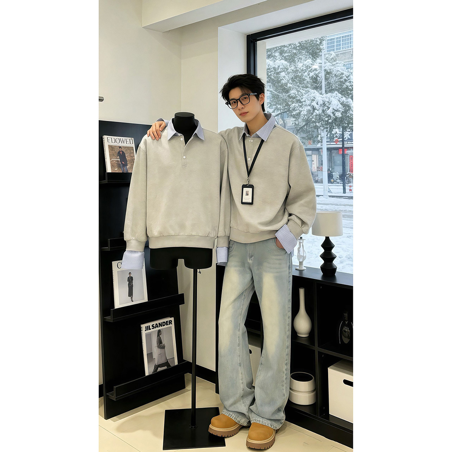 311线报网描述:假两件长袖polo衫男款冬季加绒保暖内搭卫衣