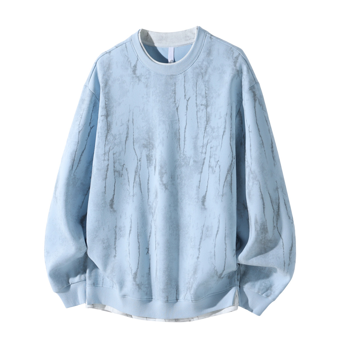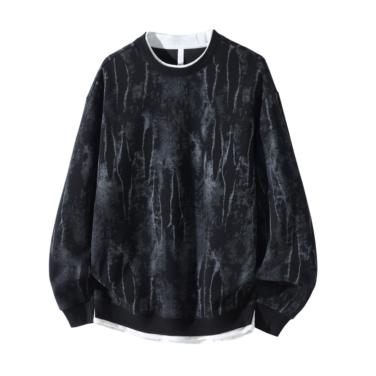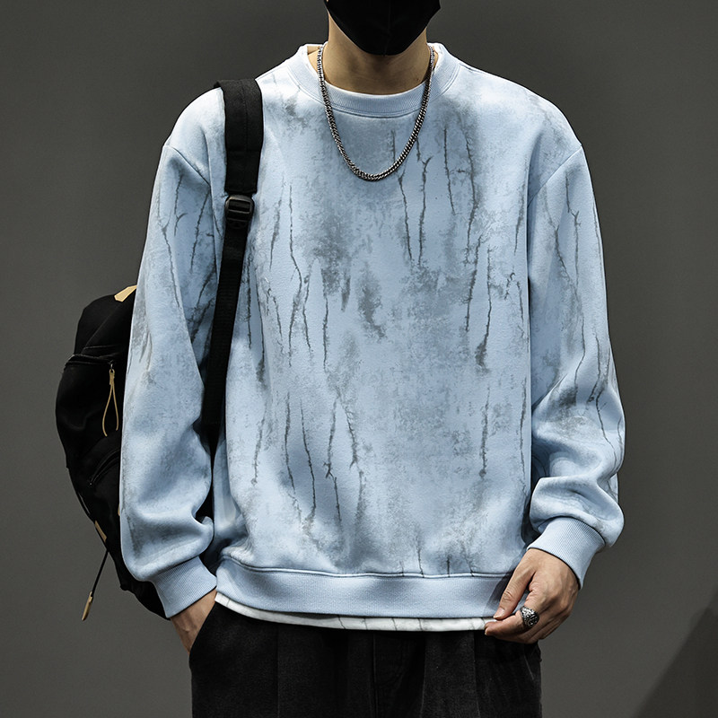 加绒圆领卫衣男款秋冬季重磅青少年初高中学生扎染假两件宽松长袖