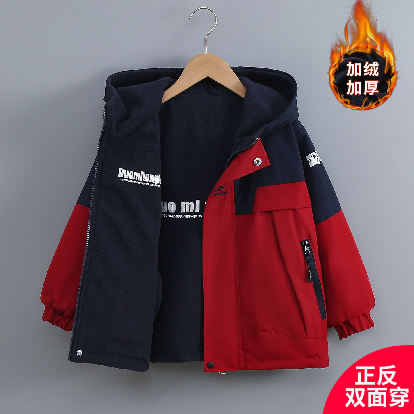 男童[双面穿]加绒冲锋衣正反穿外套春秋儿童中大男孩潮衣2026新款
