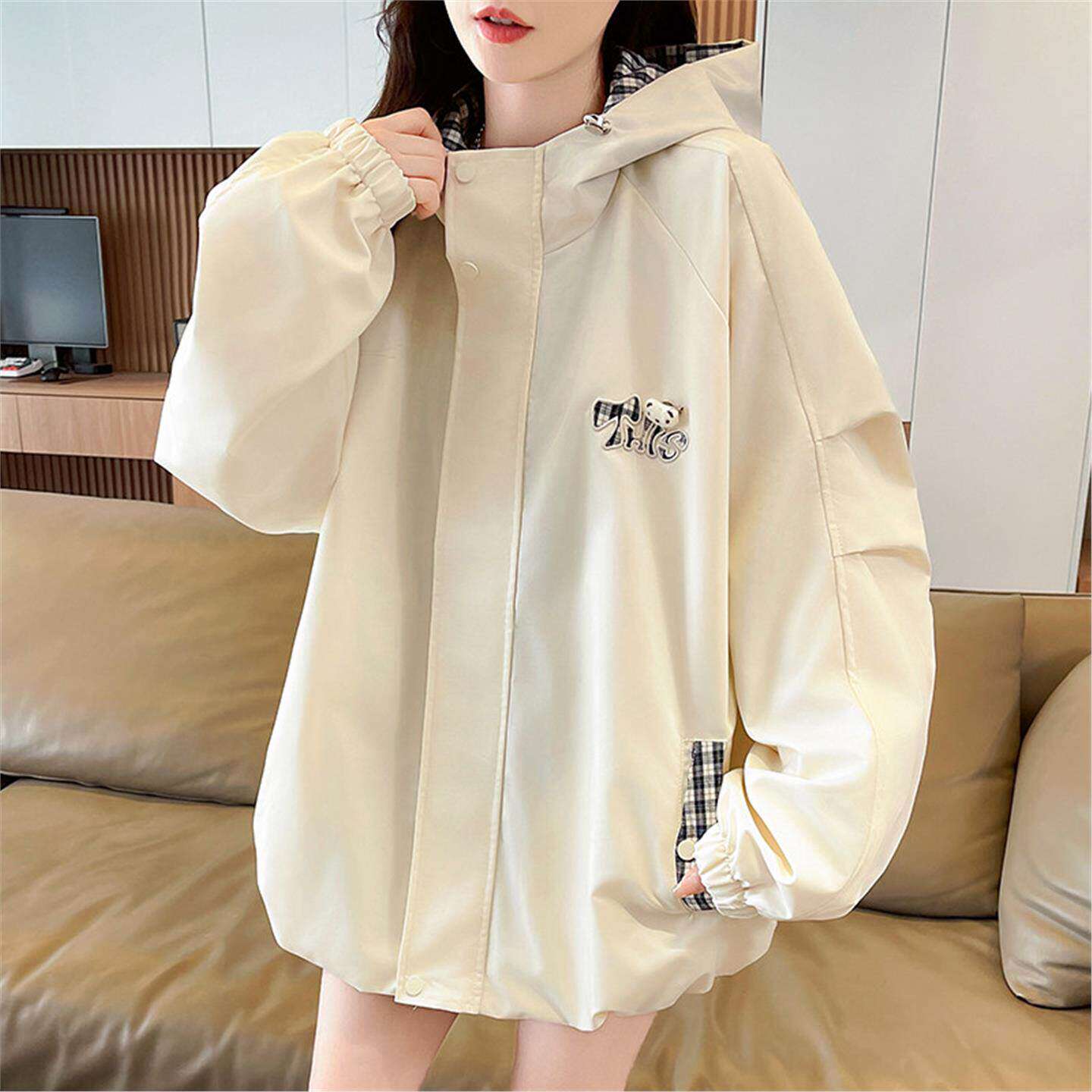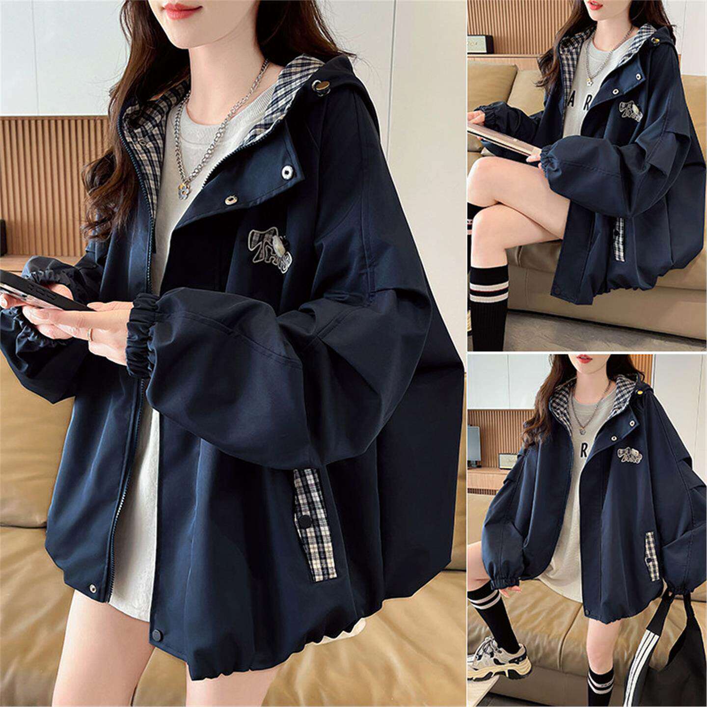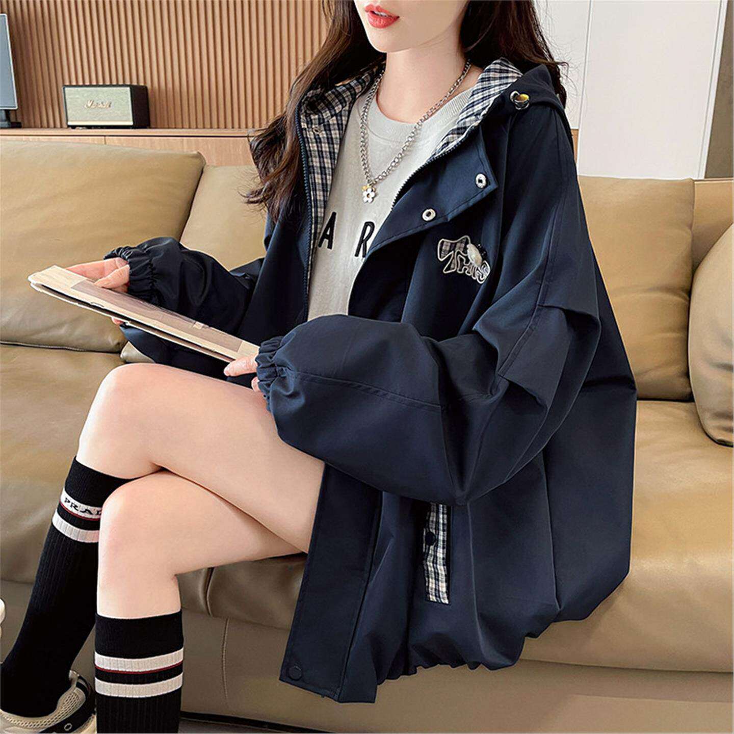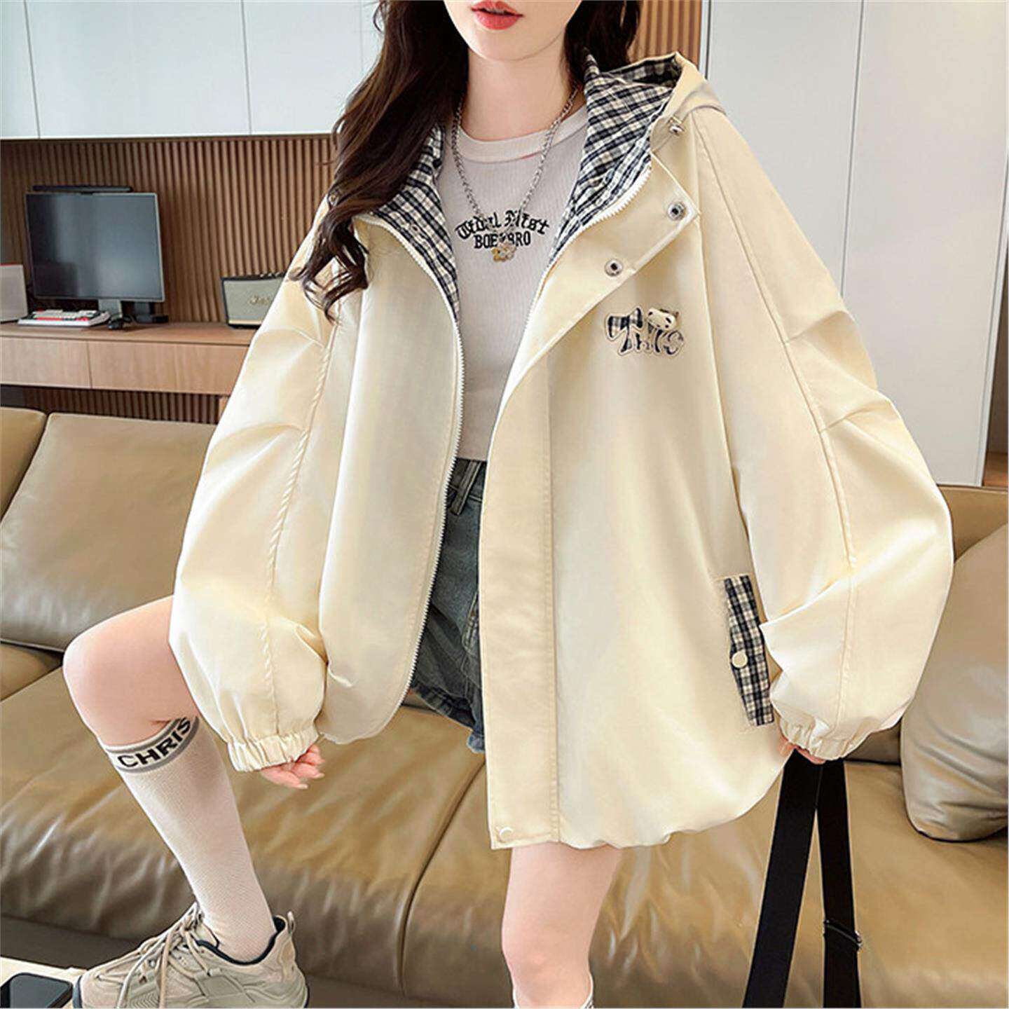 初中生青少年格子拼接连帽外套2026春季新款高中学生宽松夹克上衣