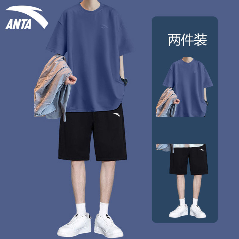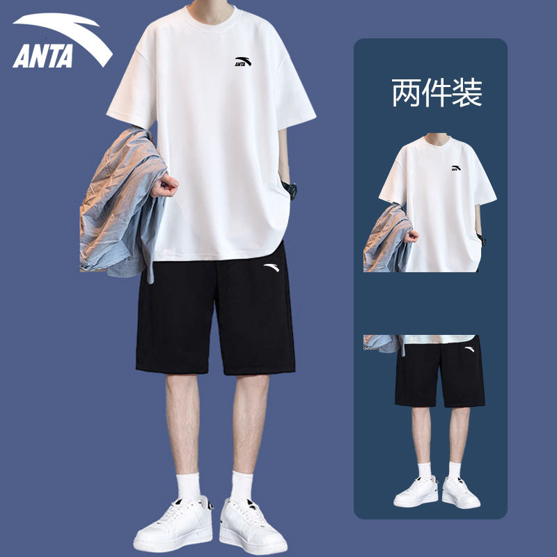 安踏运动套装男短袖短裤穿搭夏季新款青少年男装帅气学生潮流套装