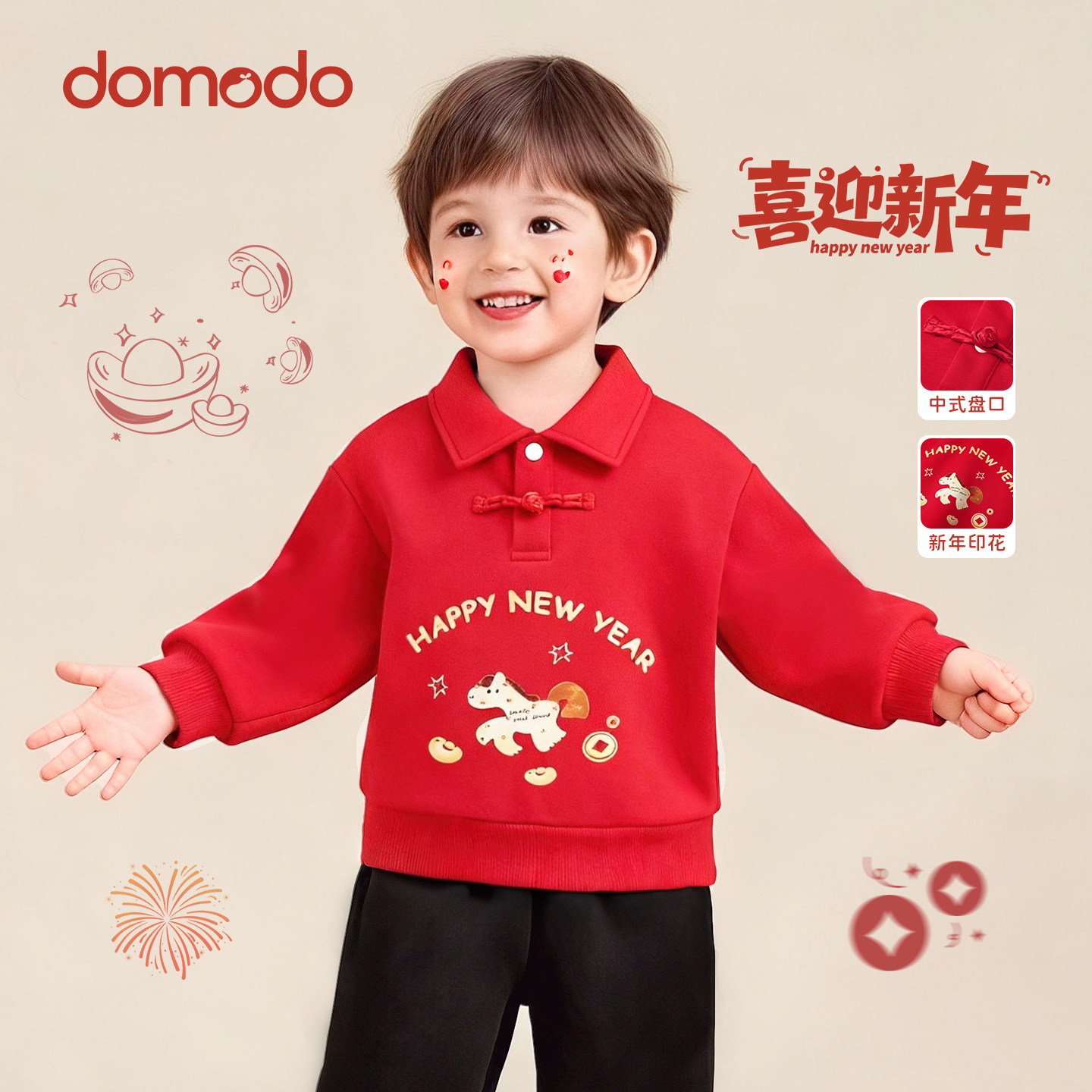 女童过年衣服红色卫衣儿童中国风喜庆春节2026年新年跨年衣服男童