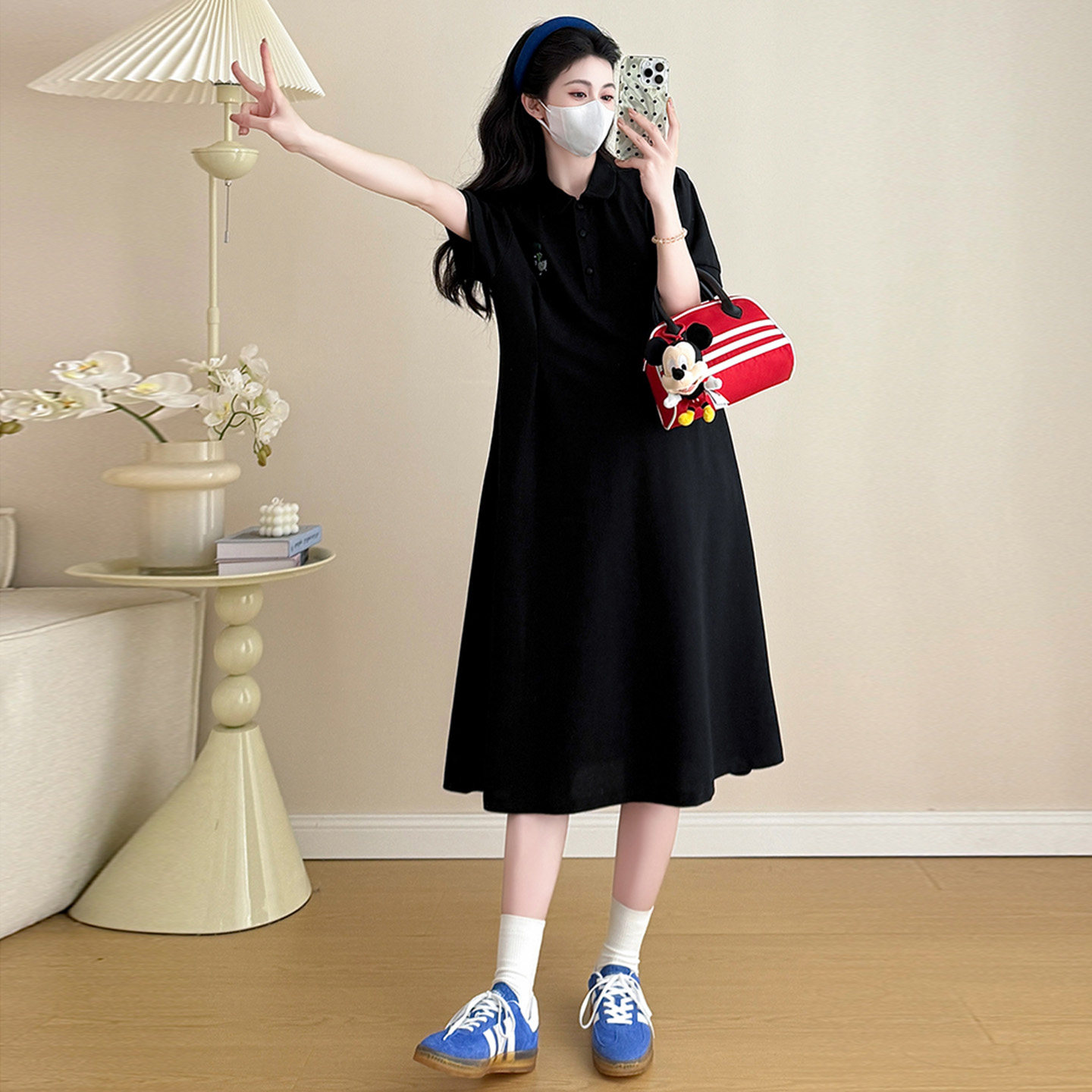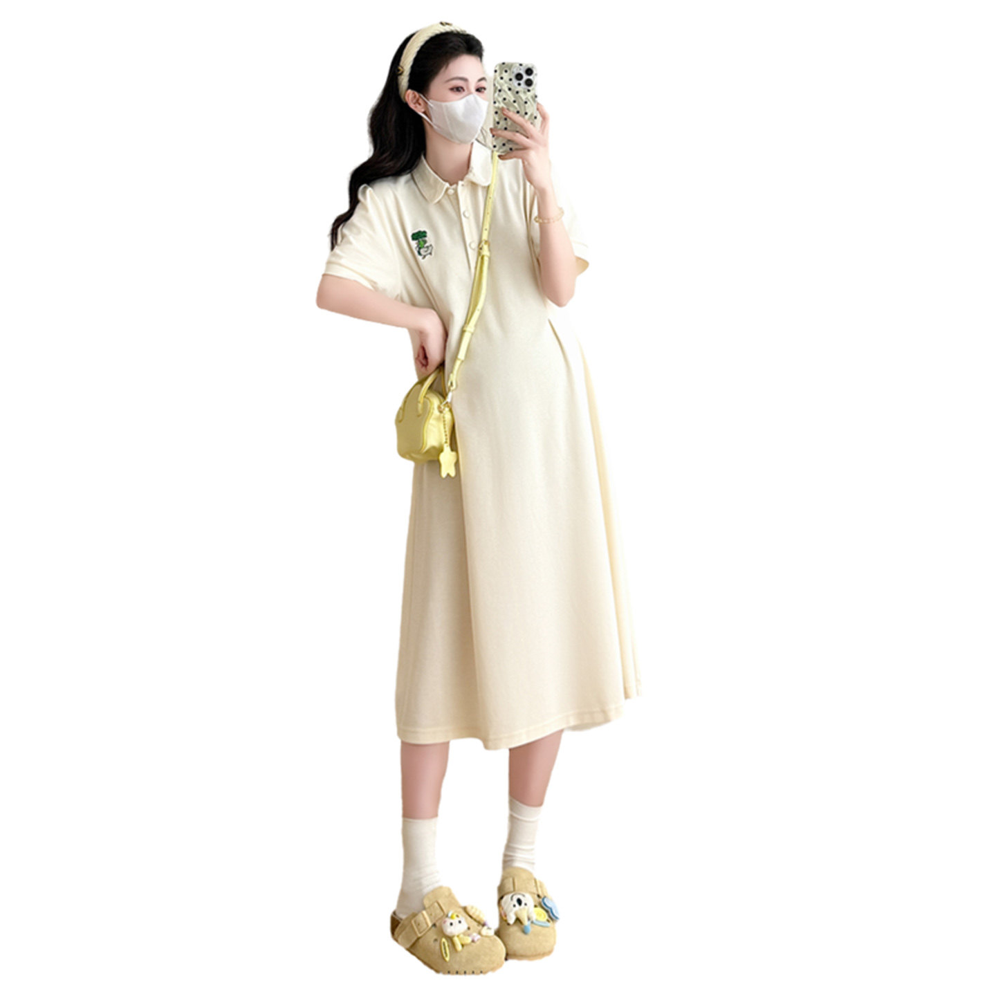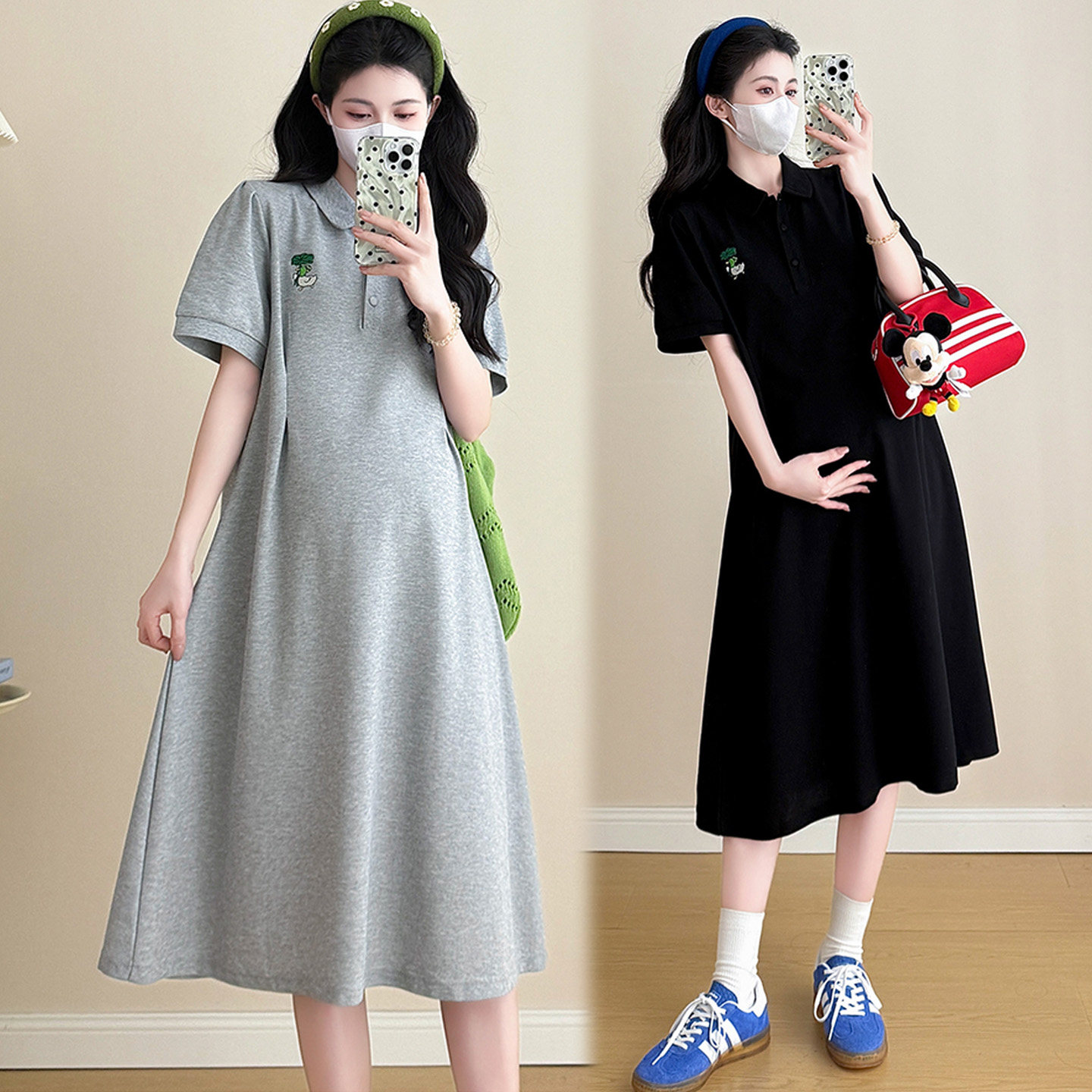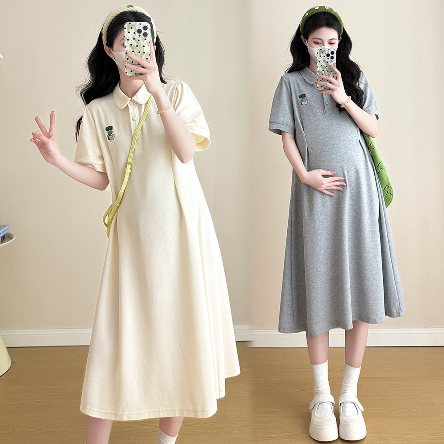 孕妇夏季连衣裙时尚显瘦polo领T恤裙宽松大码刺绣薄款夏天裙子女