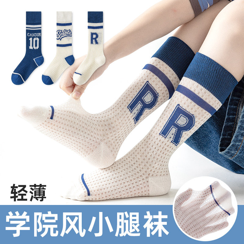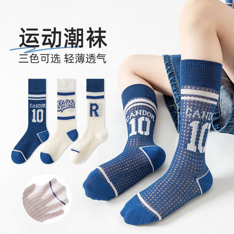 男童长筒袜夏季网眼薄款纯棉儿童袜子足球袜吸汗防臭小腿运动学生