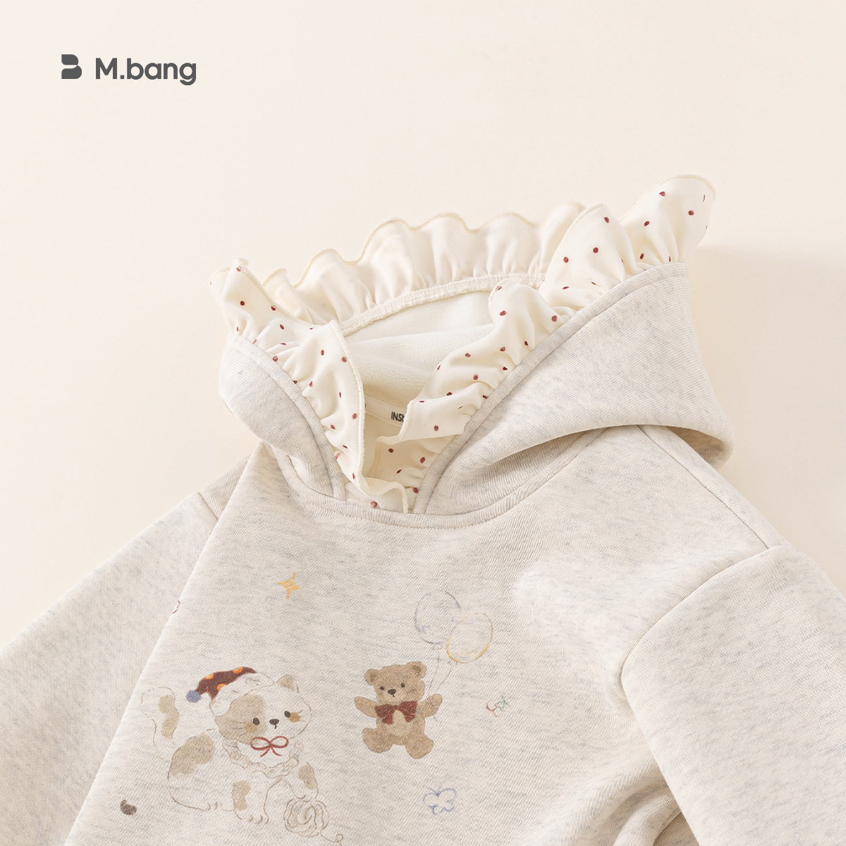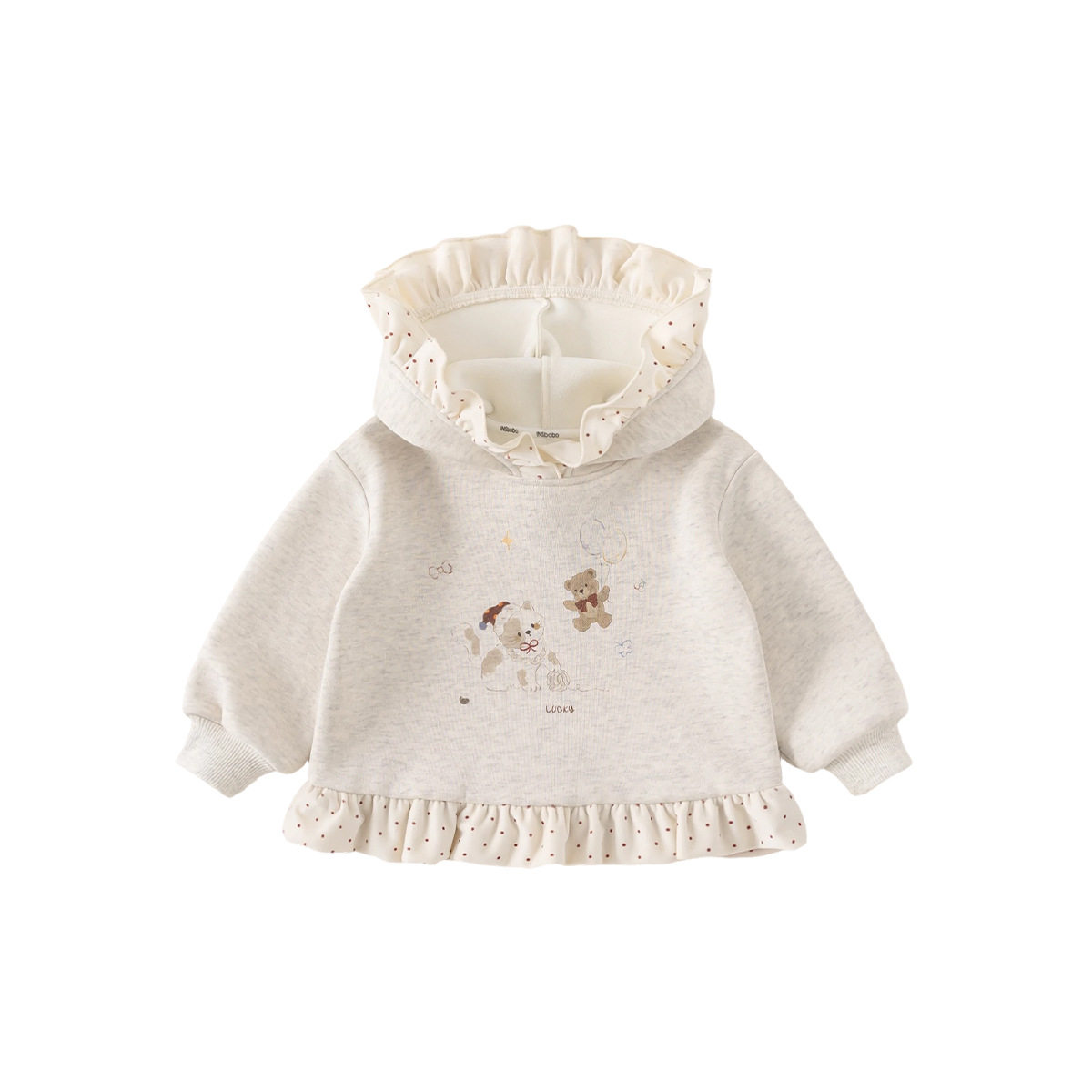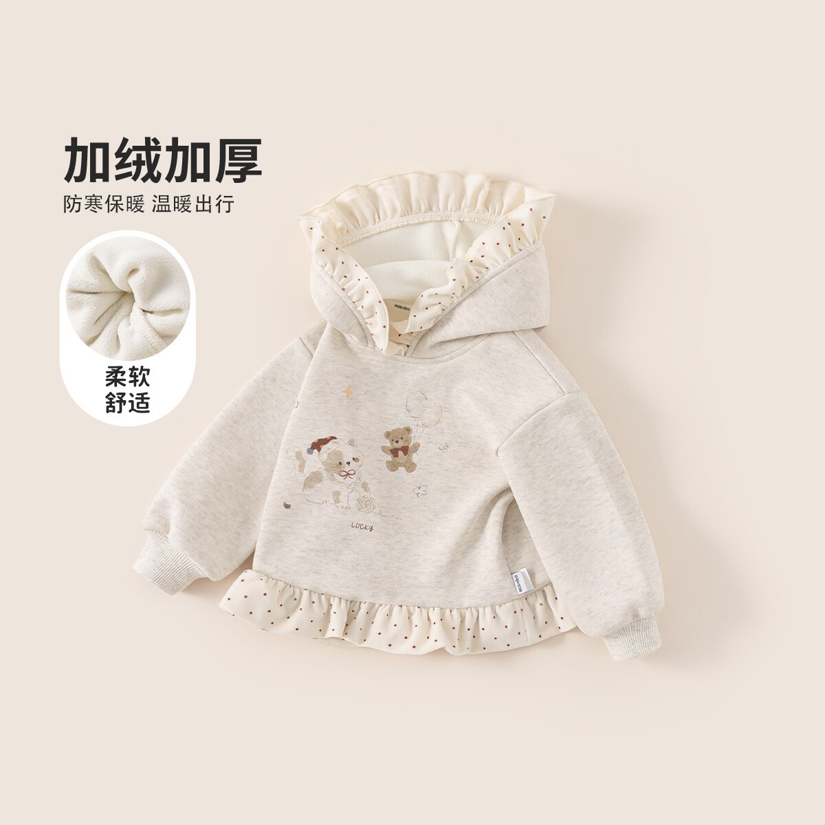 女童连帽卫衣冬季新款加绒加厚儿童上衣波点花边女宝宝内搭衣服冬