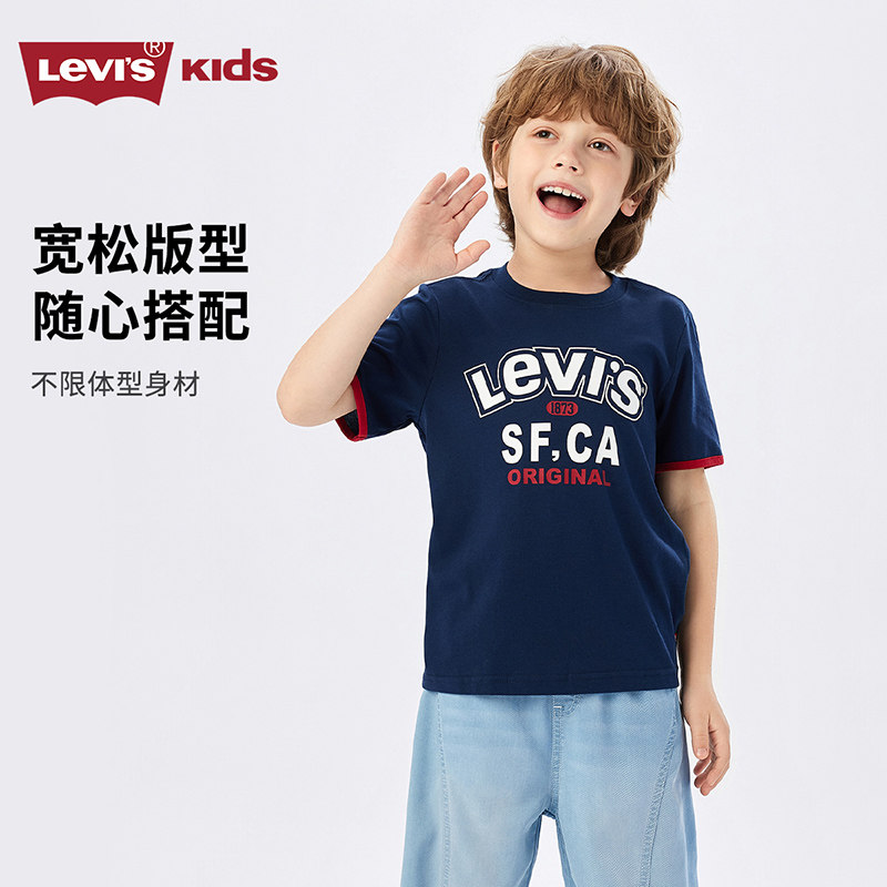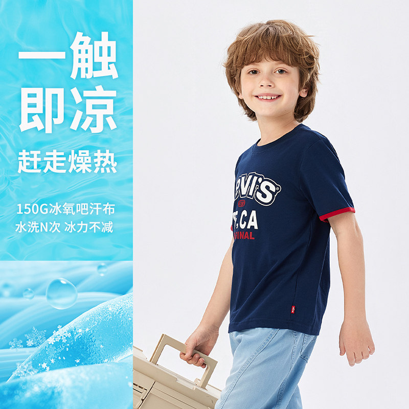 【凉感透气】Levis李维斯男童短袖T恤儿童2026夏季新款运动半袖女