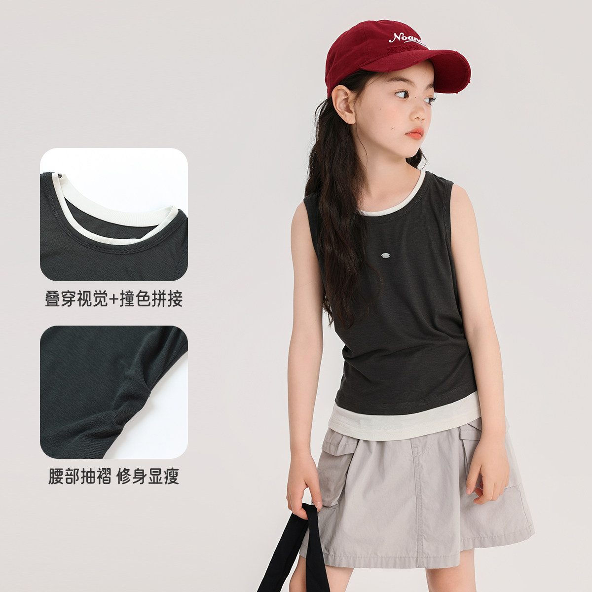 布丁哈鲁童装夏装女童背心2026新款夏季儿童撞色假两件无袖上衣