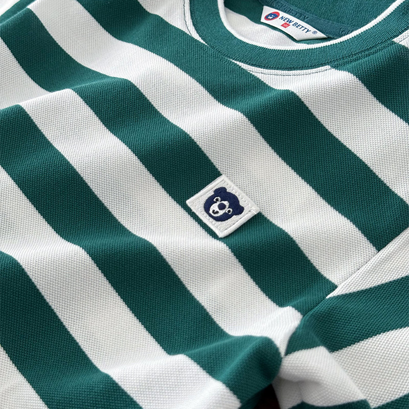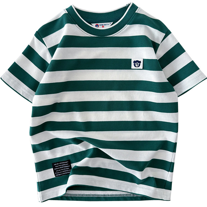 A类 男童100%纯棉短袖体恤~中大童条纹圆领半袖T恤珠地网眼棉透气