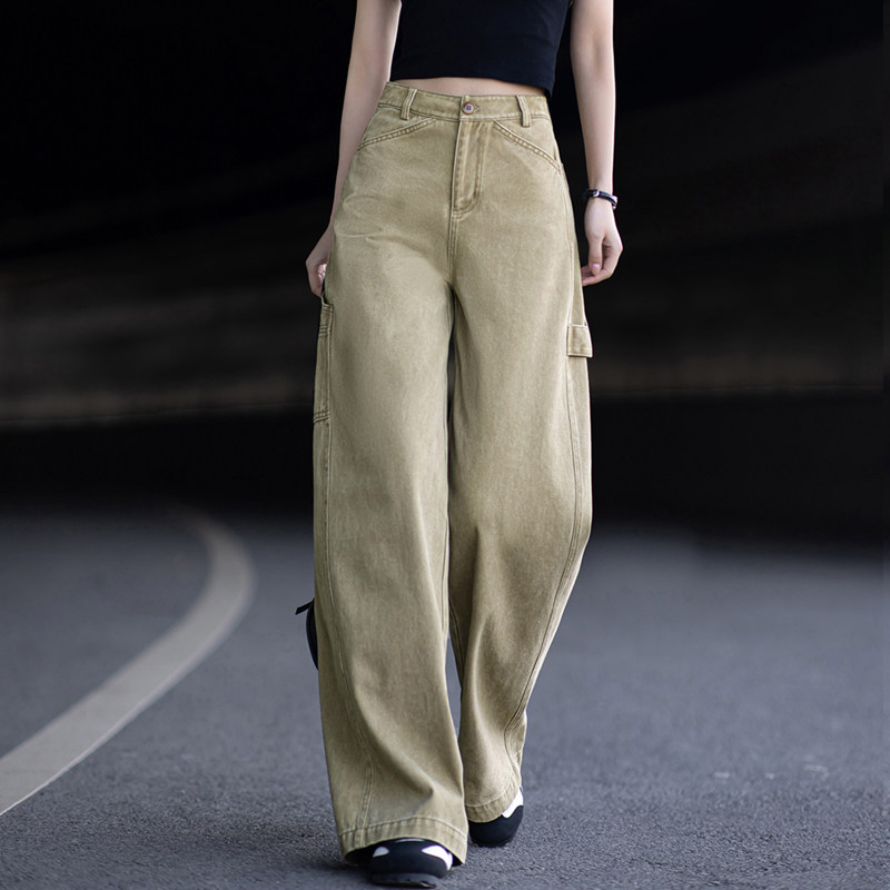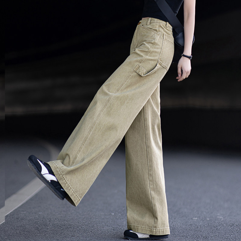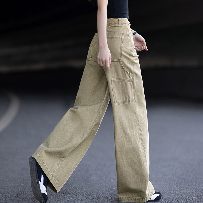 卡其色工装牛仔裤女款爆款2026新款春秋高腰直筒裤阔腿裤显瘦裤子