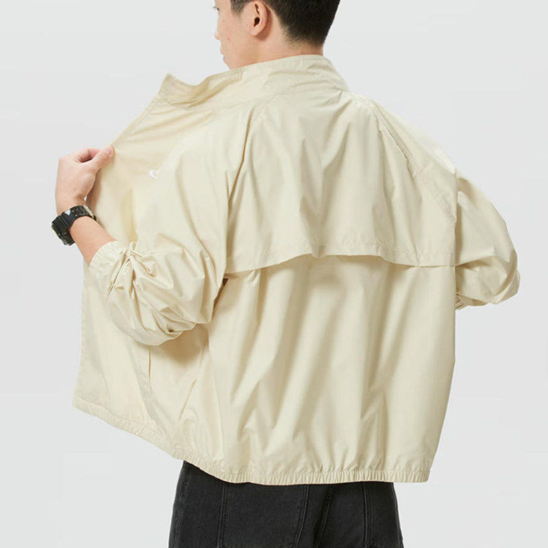 Nike耐克立领外套男网眼运动服米白冲锋衣夹克新款梭织上衣防风衣