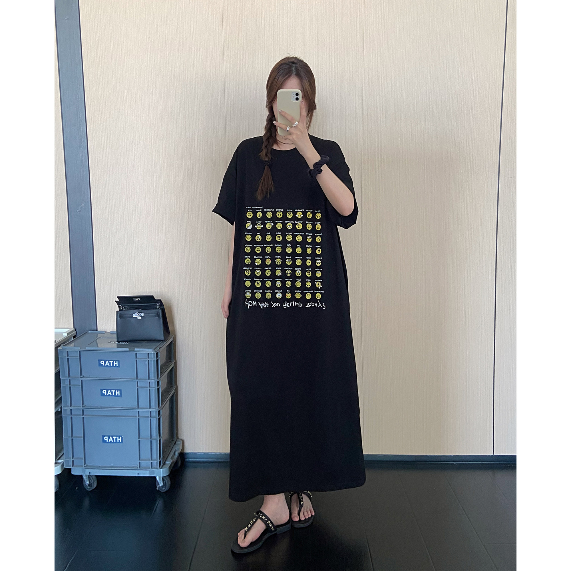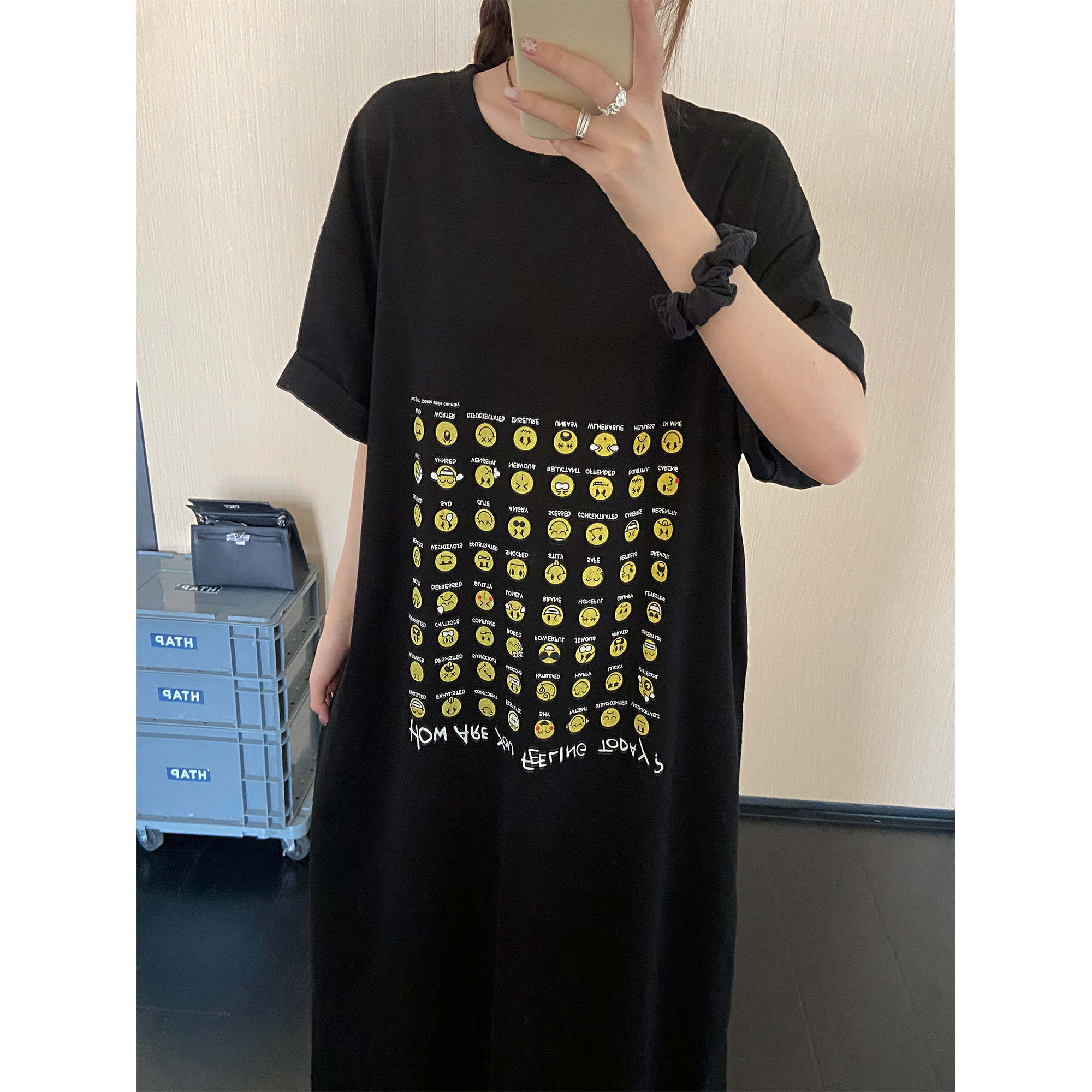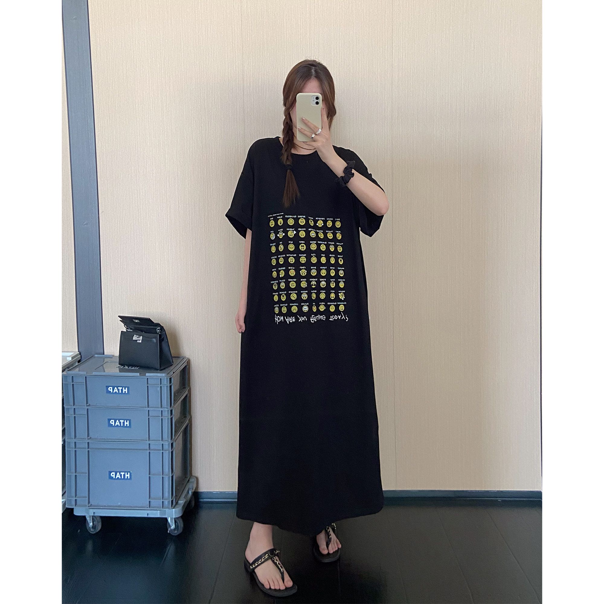 孕妇可穿韩系趣味印花短袖T恤裙夏装新款高个子宽松遮肉连衣裙女