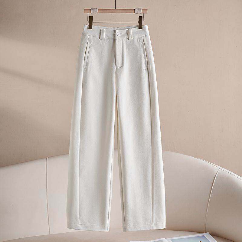 高品质白色窄版直筒裤女款爆款2026春夏新款宽松显瘦百搭休闲裤子
