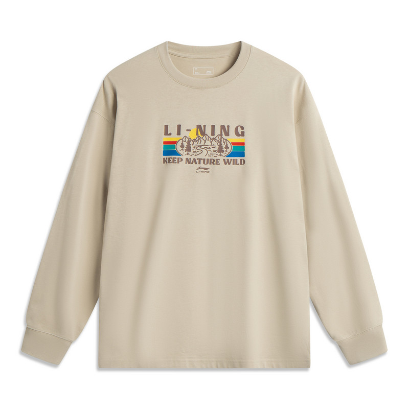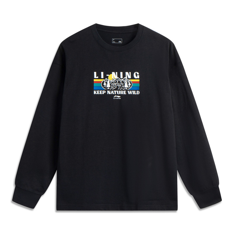 李宁T恤夏男款运动生活系列舒适透气简约宽松长袖文化衫AHSV335-
