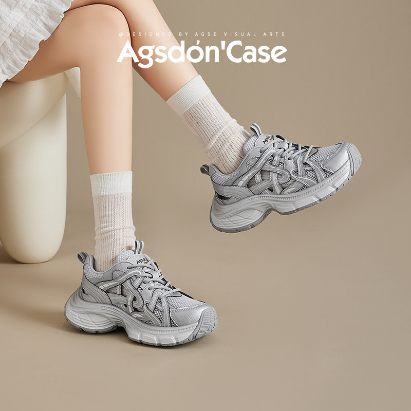 奥古狮登老爹鞋女款2026新款春夏镂空透气网面女鞋厚底轻便运动鞋