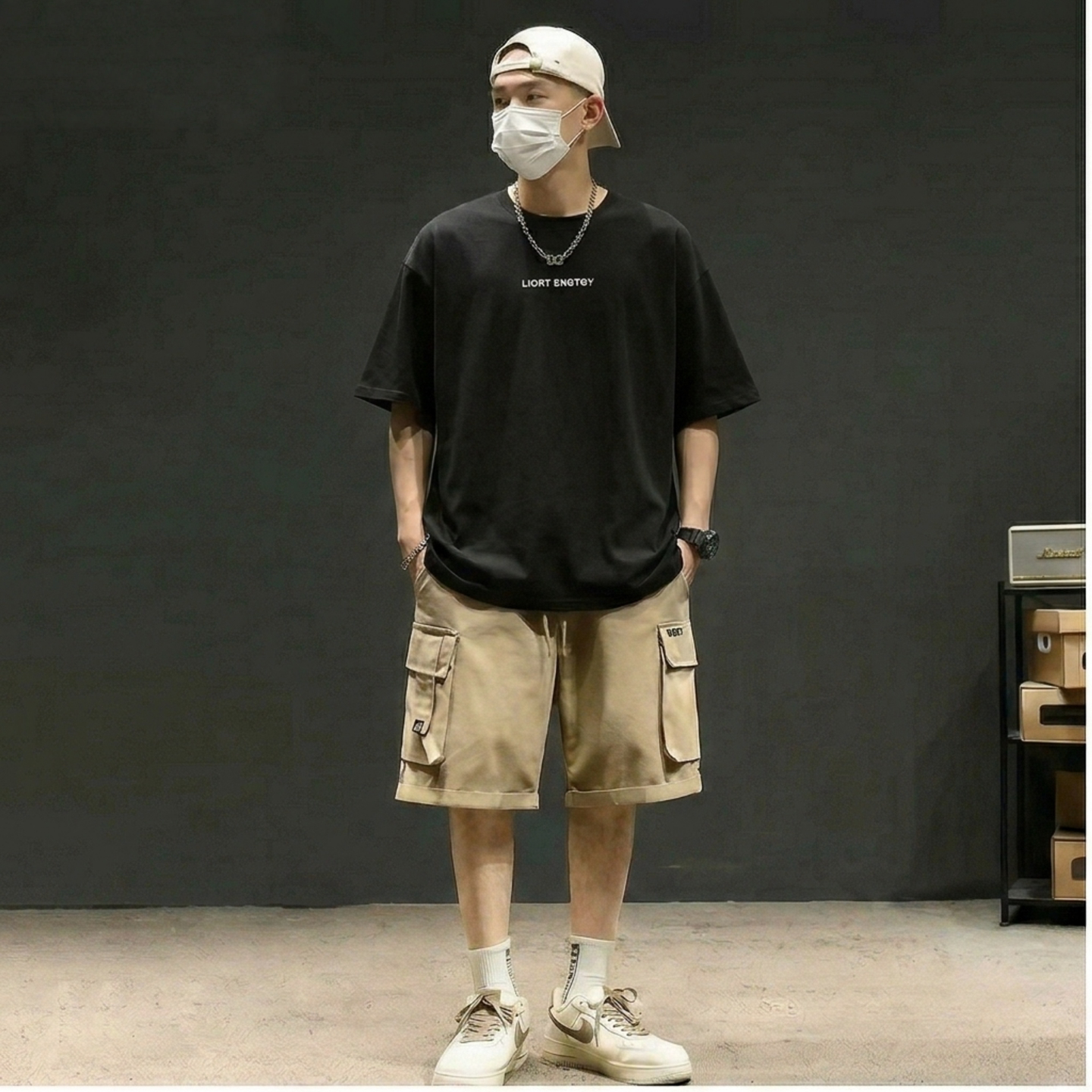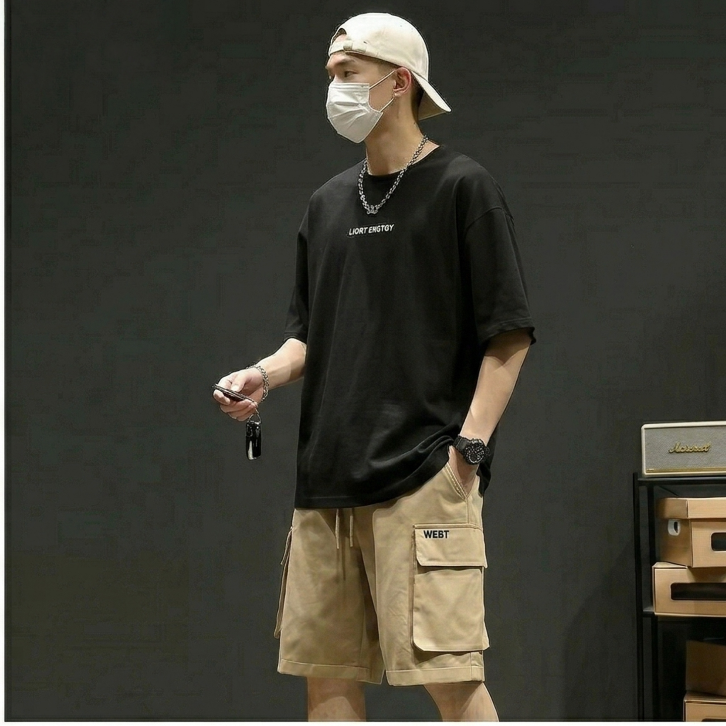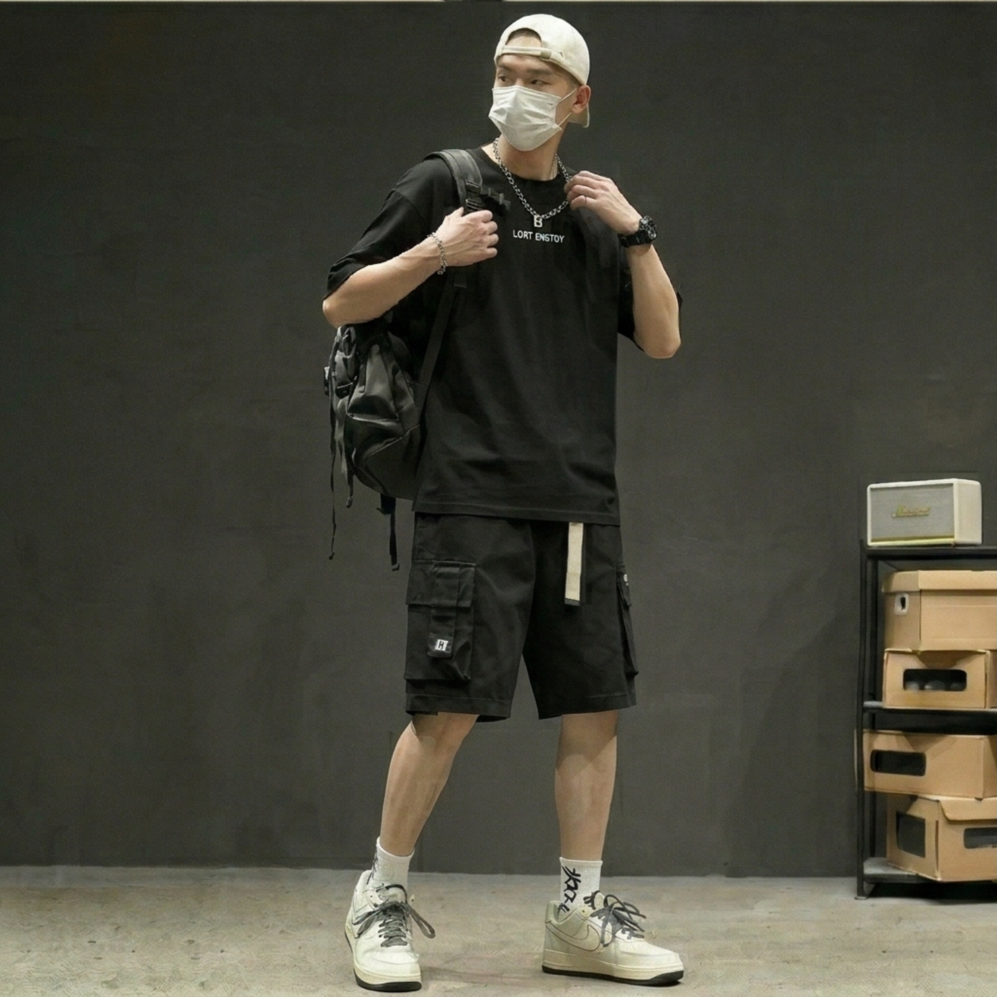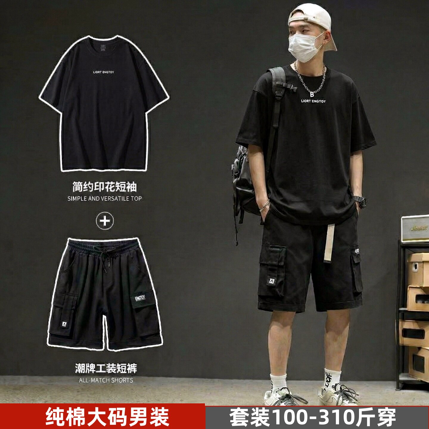 纯棉特大码夏装青少年男装帅气学生潮流套装t恤男短袖短裤两件装