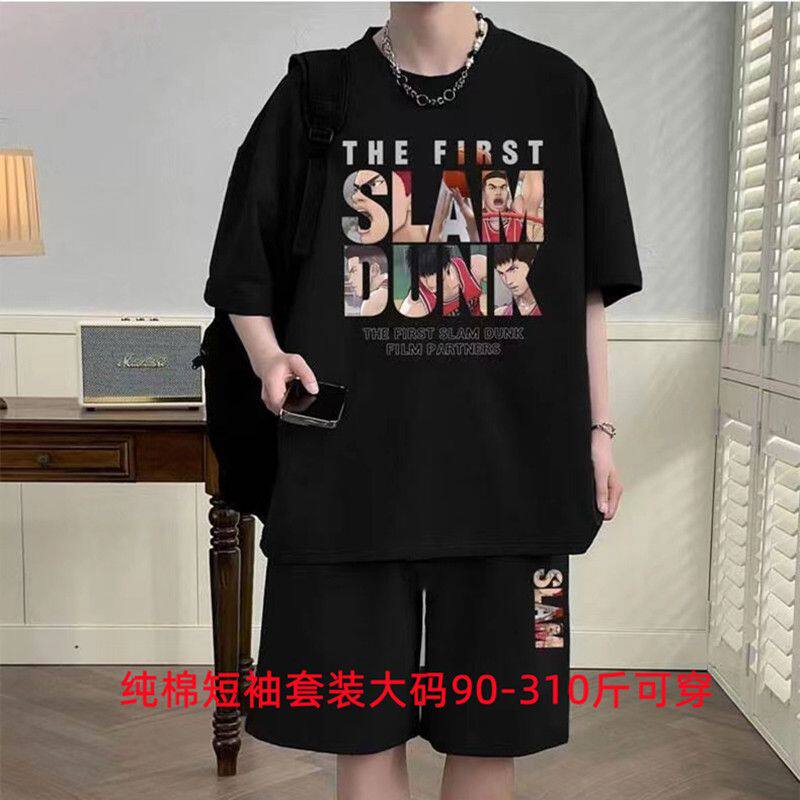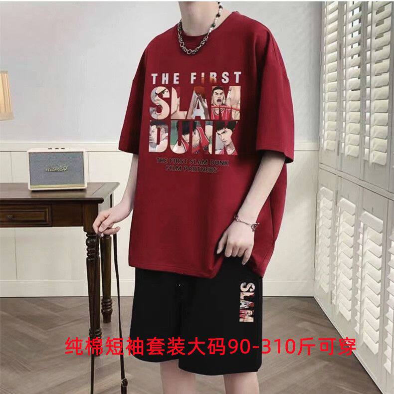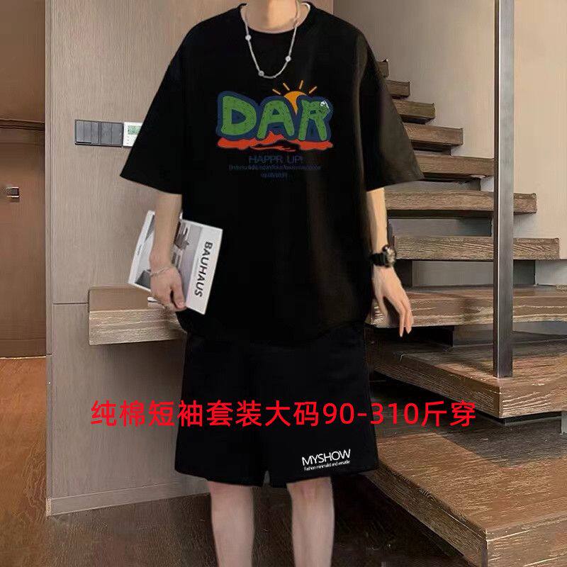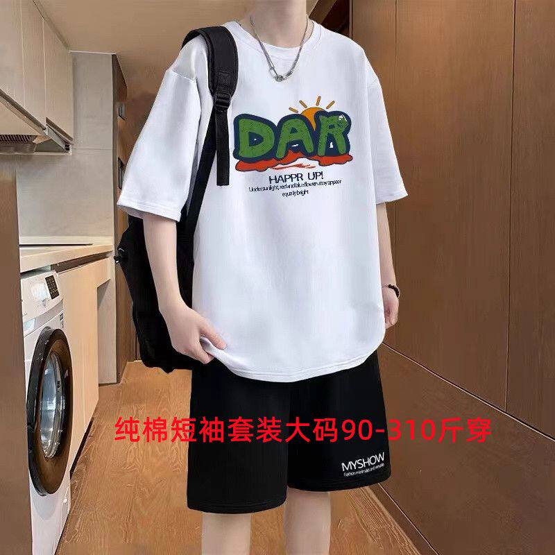 男士特大码纯棉短袖短裤一套搭配青少年男装帅气学生t恤夏季套装