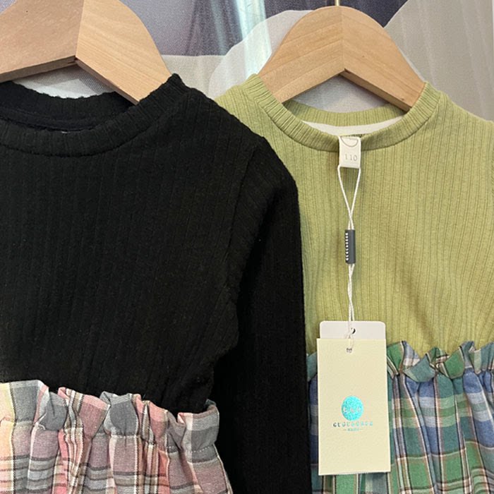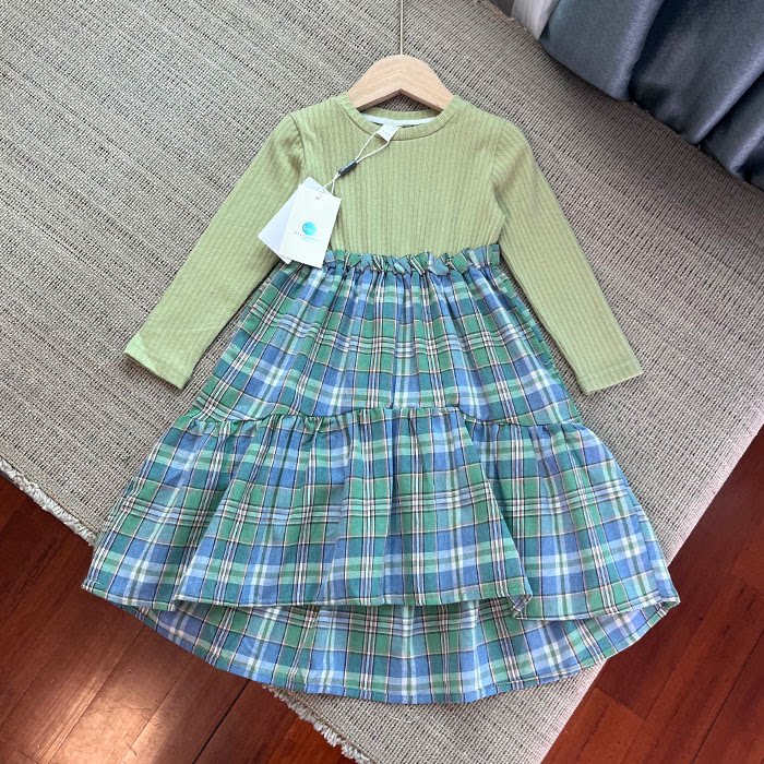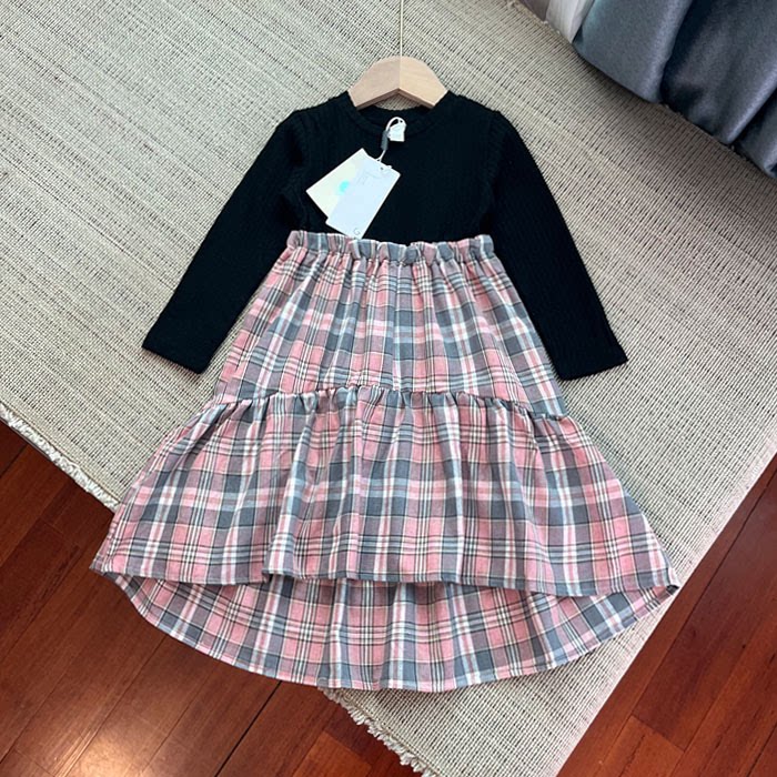 6022女童长袖连衣裙春秋夏季薄款拼色格子裙110-150cm