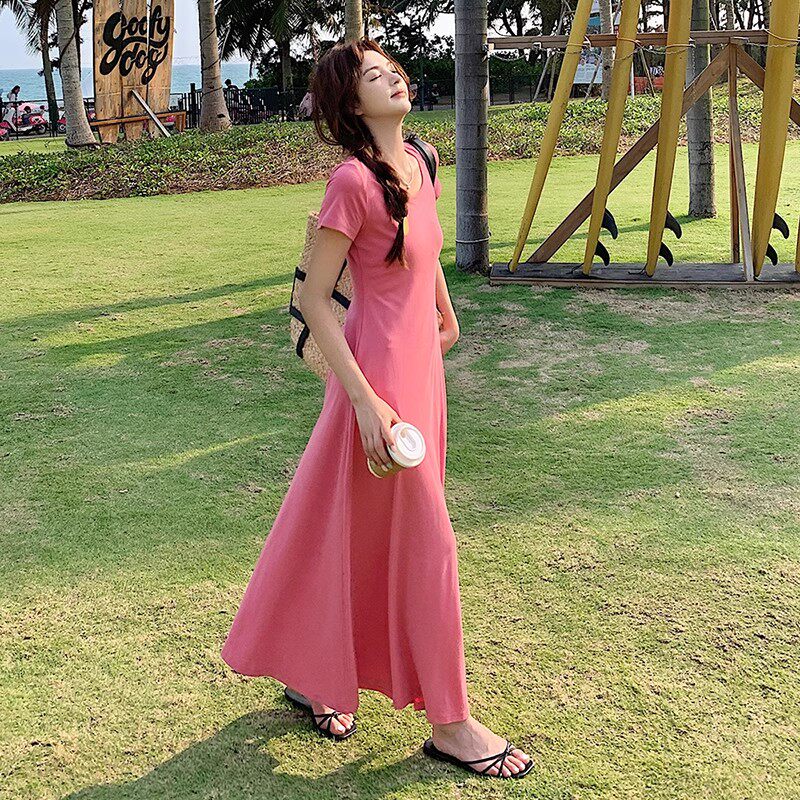 法式简约气质长裙连衣裙女2025初夏穿搭高级感独特漂亮修身长裙