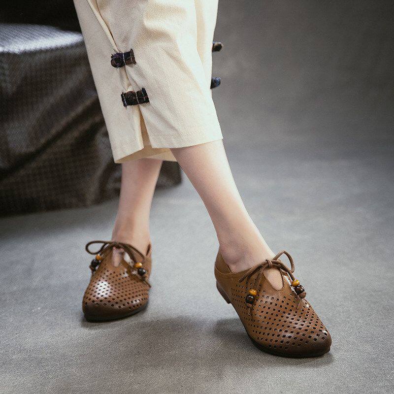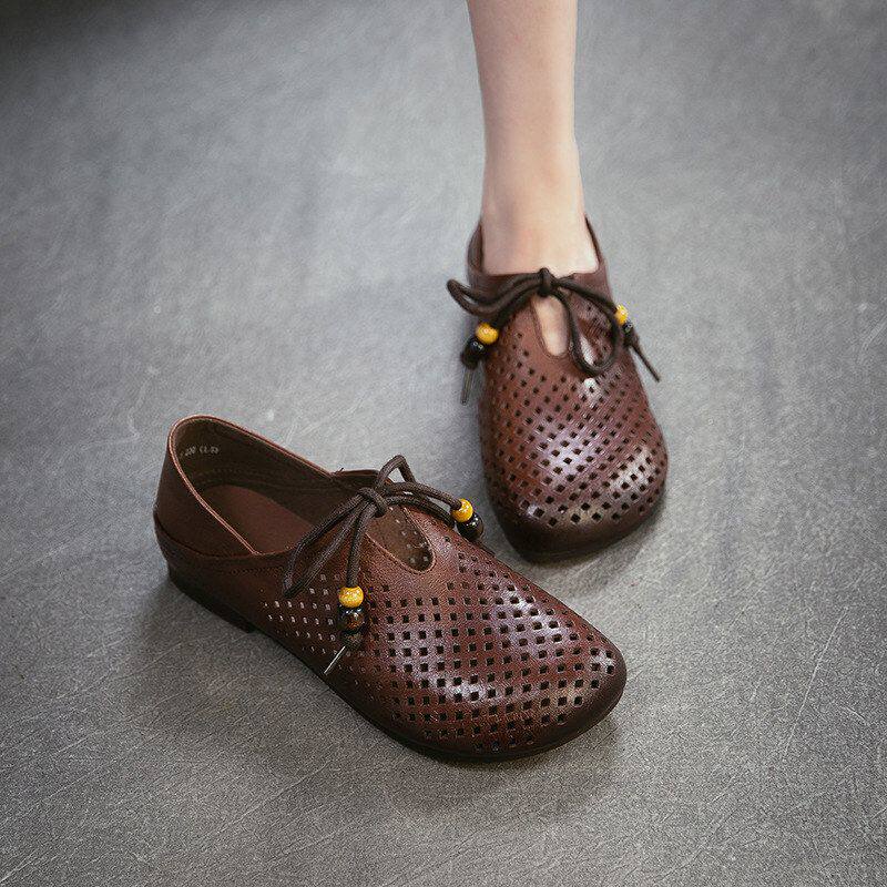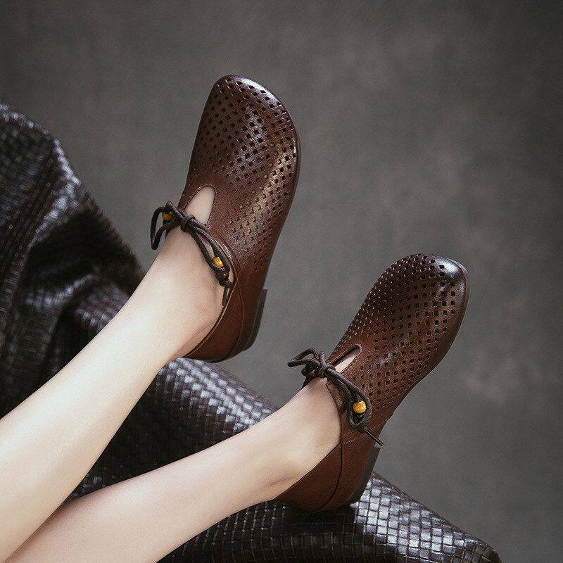 杰骤2026夏季新款头层牛皮复古镂空洞洞凉鞋透气通勤轻便百搭女鞋