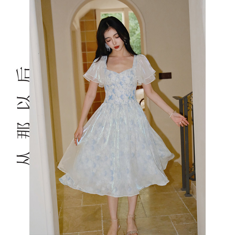 从那以后郁香流光法式轻奢连衣裙女长裙气质a字高级感收腰裙子夏
