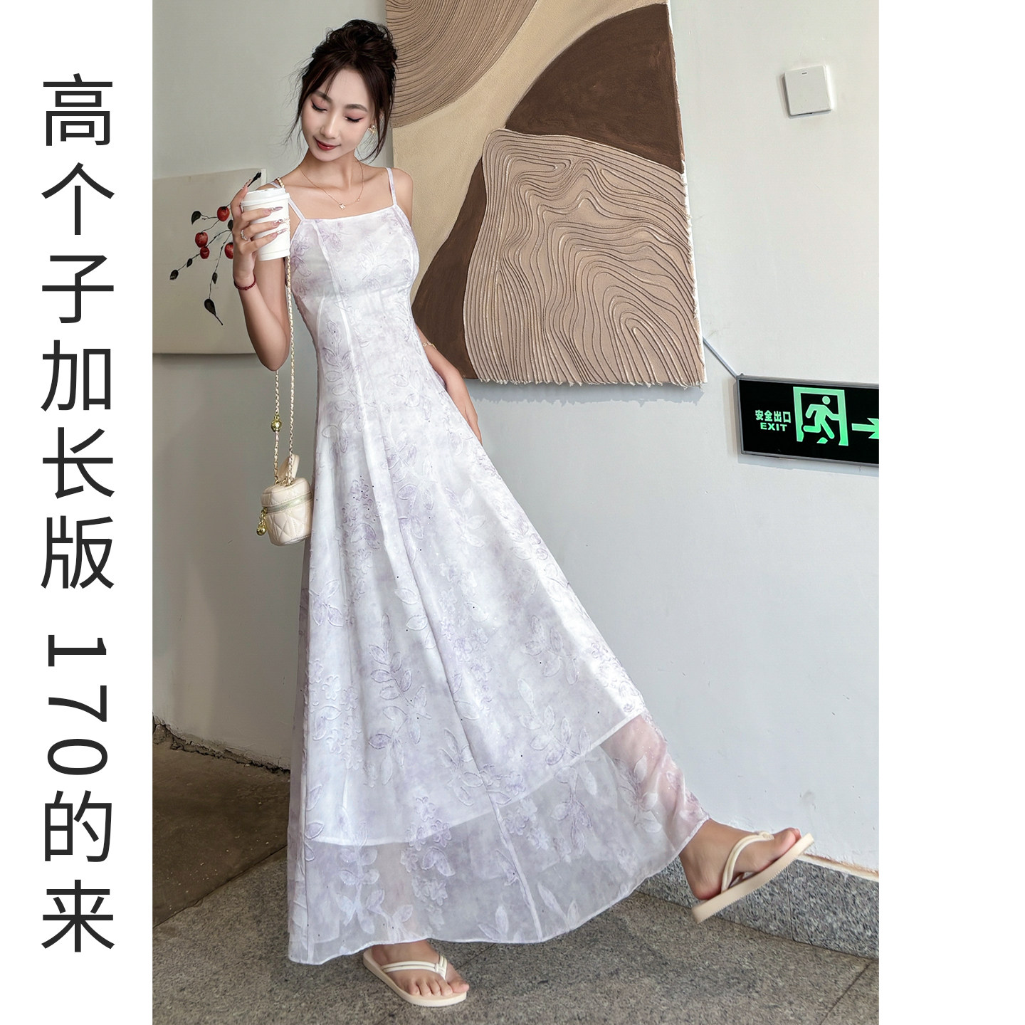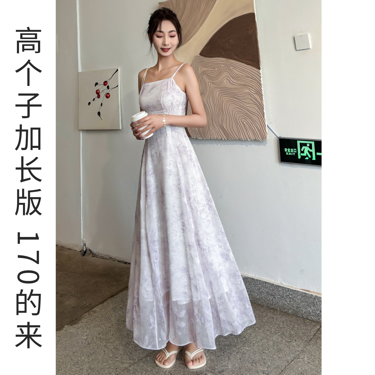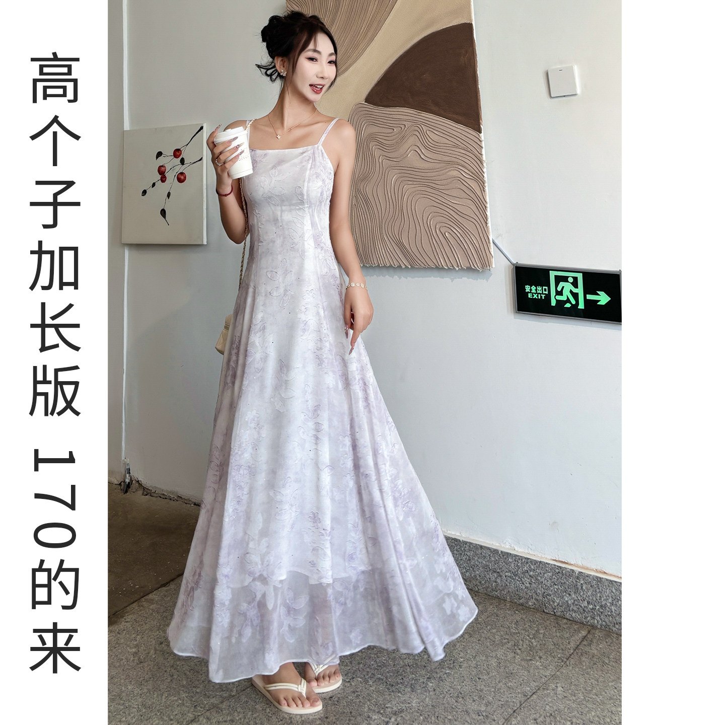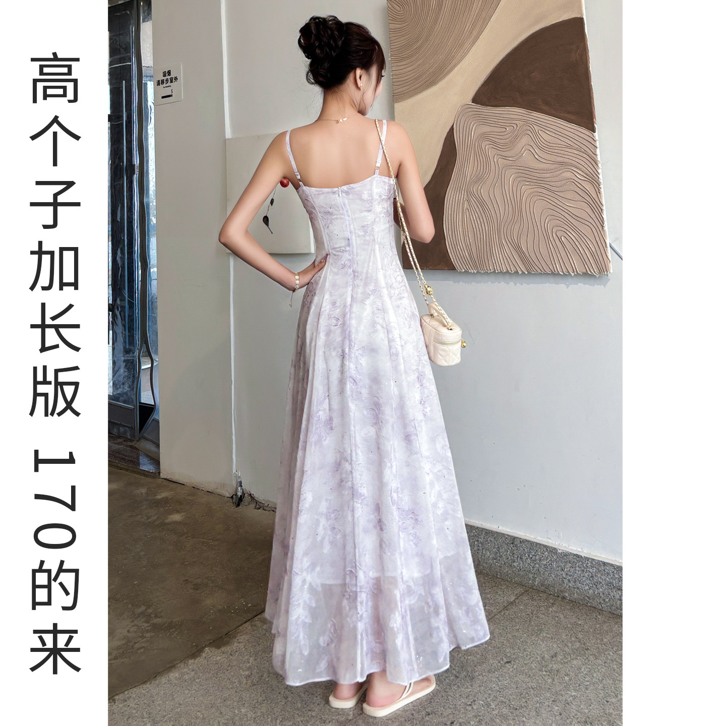 紫色吊带连衣裙女夏高个子长款收腰A字长裙轻奢高级感绝美不撞款